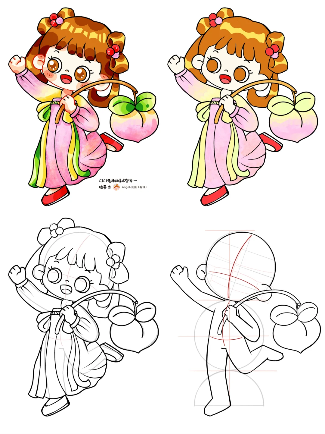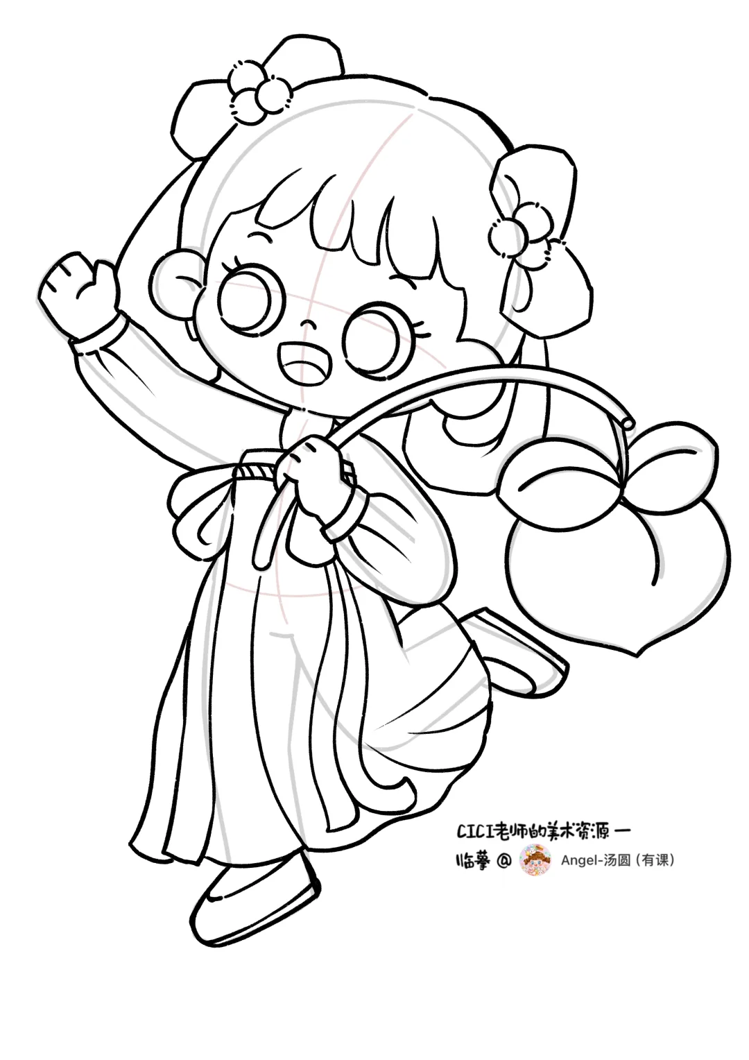🎨2.5头身古风小女孩,临摹📚适用传统节日主题画。