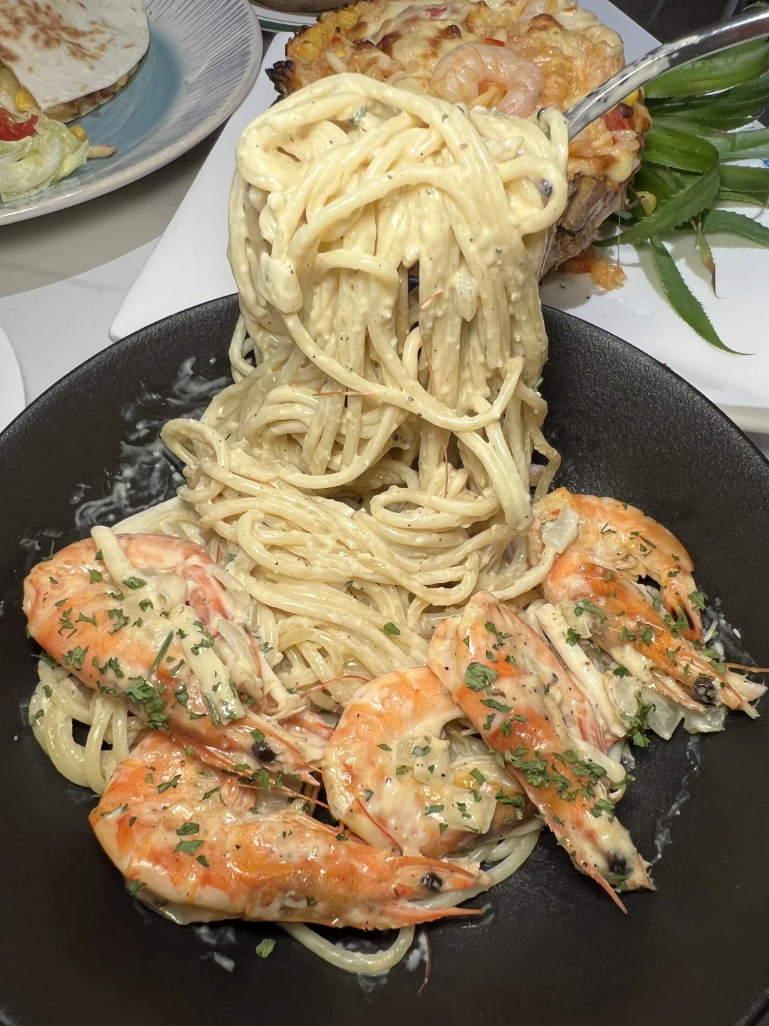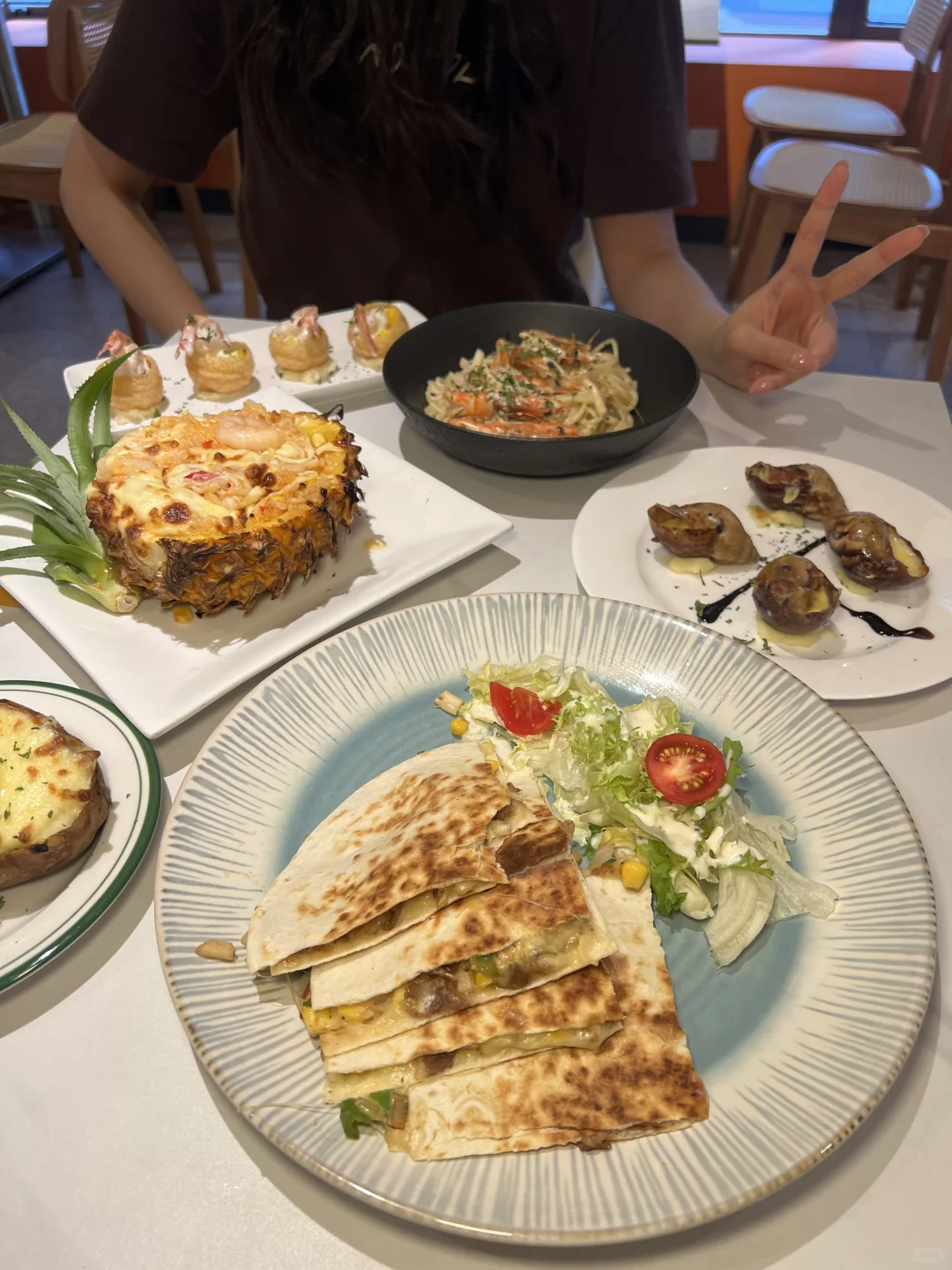各种芝士焗饭20几,小吃有的个位数 真的很便宜啊,大虾奶油意面真的爱了爱了 意面很有韧劲,但吃起来口感软糯 他家真的可以放心冲