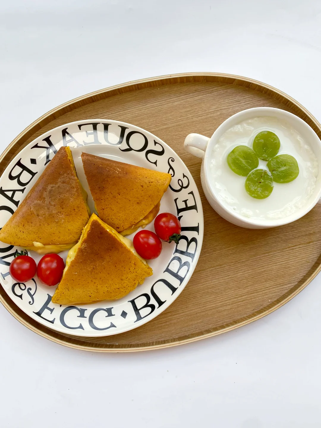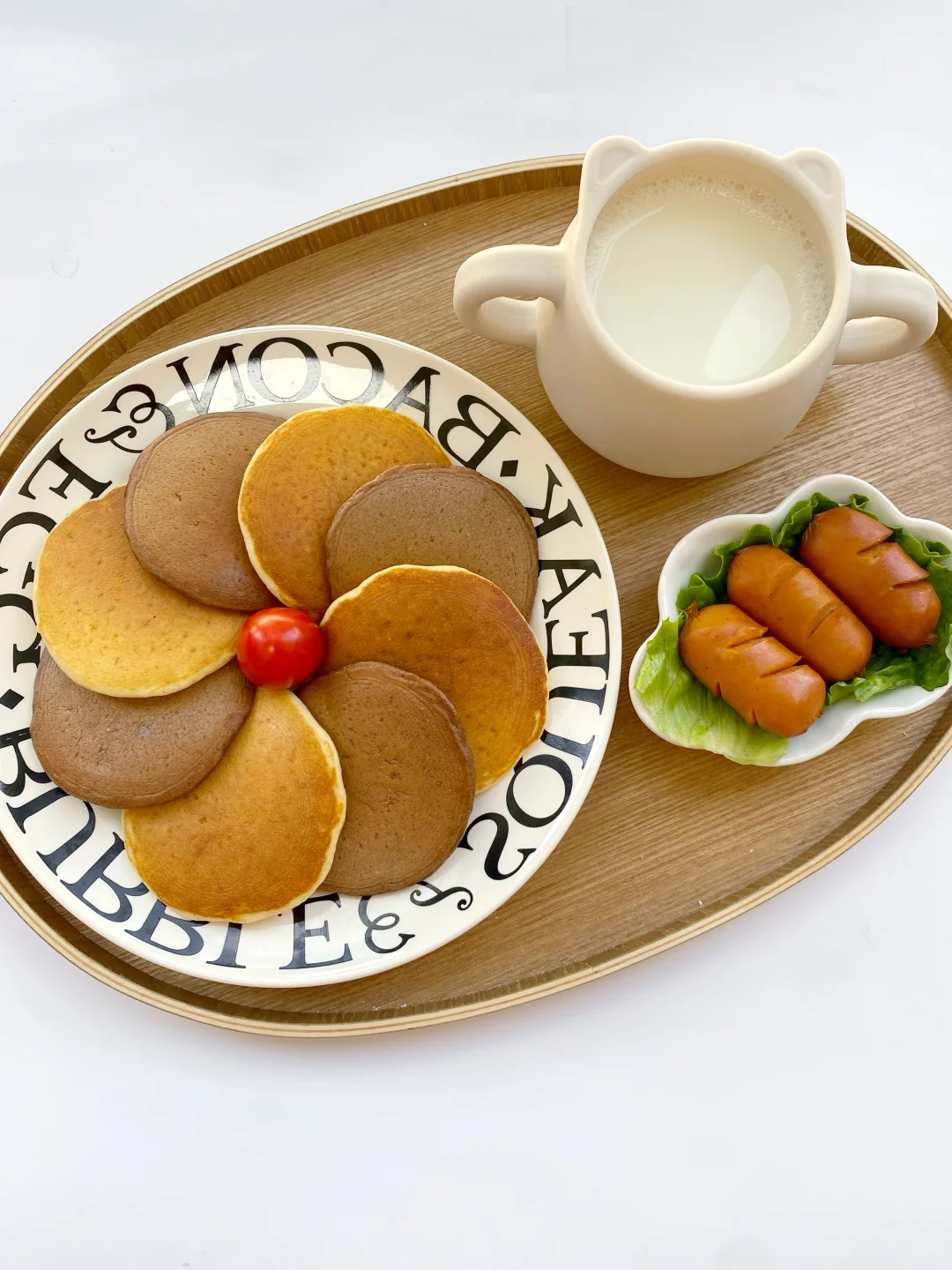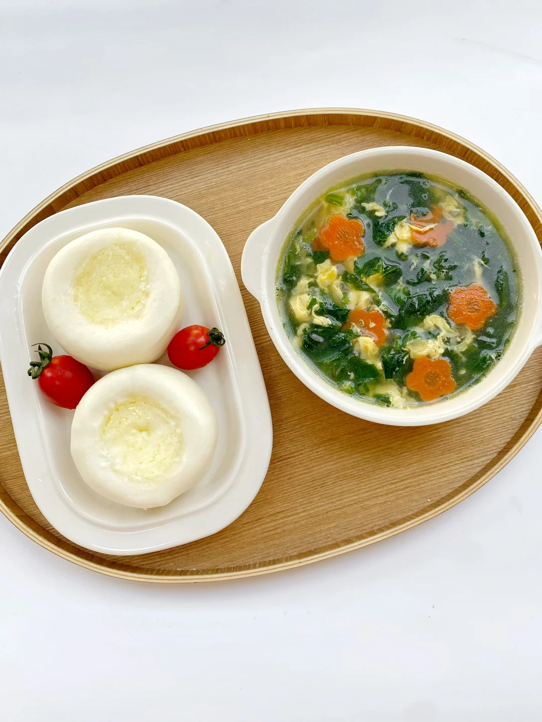 1⃣️奶酪馒头➕芙蓉蔬菜汤 满口奶酪的馒头真是好香香呀,香甜松软吃不腻! 2⃣️芝士厚松饼➕青提双皮奶 松饼是南瓜口味的哦,双皮奶第一次做,简易版的,早餐时间紧,搞不了太复杂的,也好吃呢。 3⃣️双色松饼➕牛奶小香肠 原味和巧克力口味都喜欢,不做选择,两种一起做了,松饼粉真的不要太方便了。小香肠直接切几刀丢空气炸锅就好啦。 4⃣️煎蛋鲜汤面➕卡通馒头 这几天降温,就安排一碗热乎乎的汤面,搭配的午餐肉是牛肉午餐肉哦,口感更好,蛋白质也更高,真空包装,开袋即食也可以。