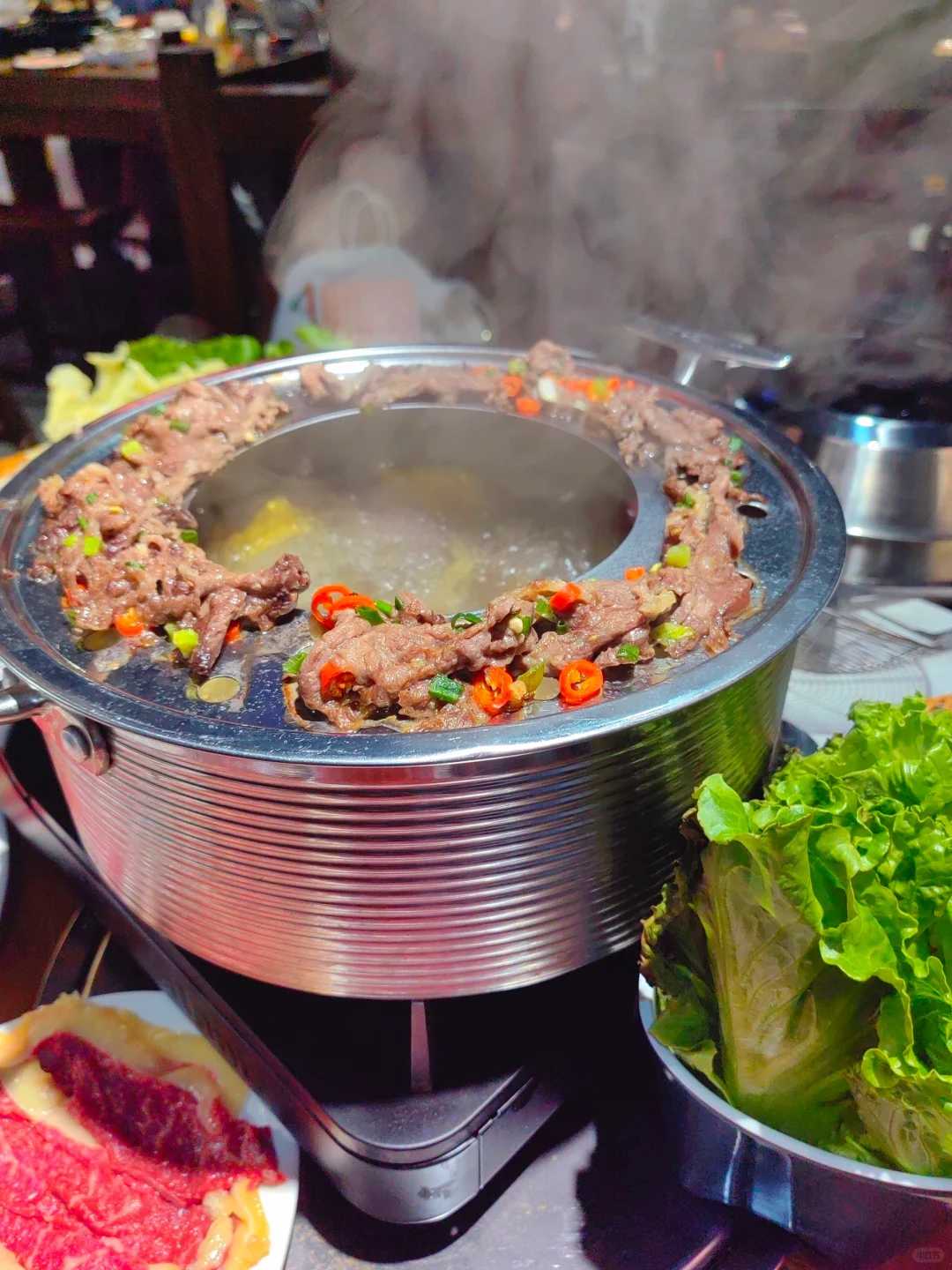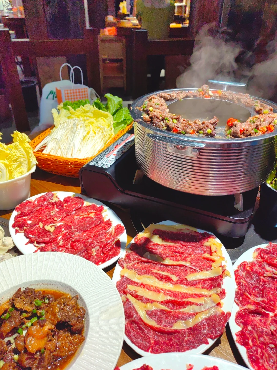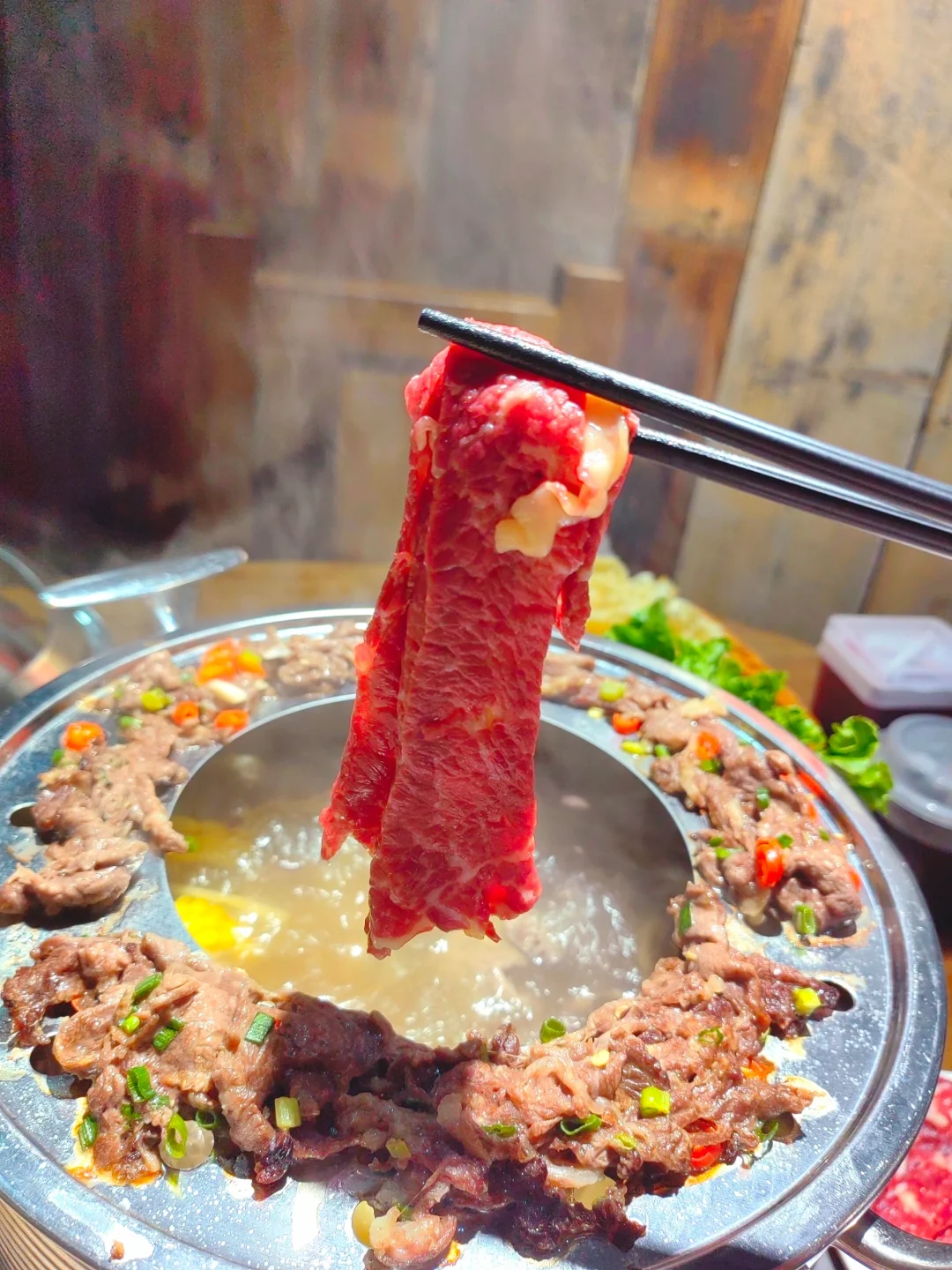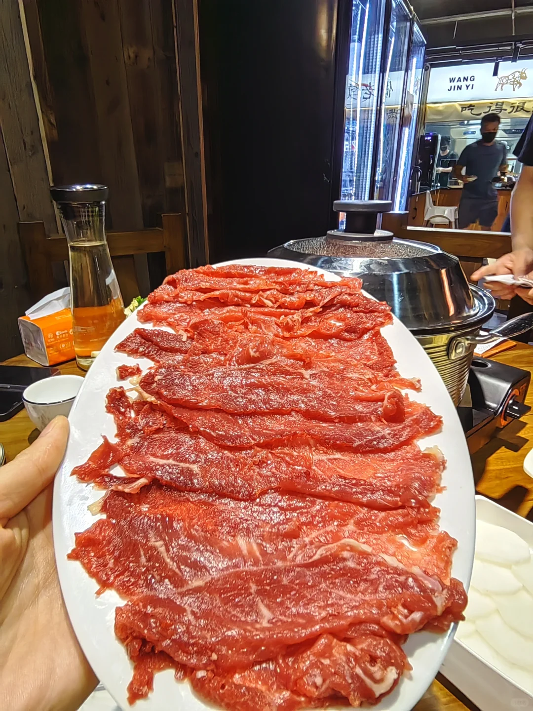 牛肉汤端上来的时候,香气扑鼻,牛肉在锅里8-10秒,拿起来看着就馋,我妈们吃了一盘又一盘。