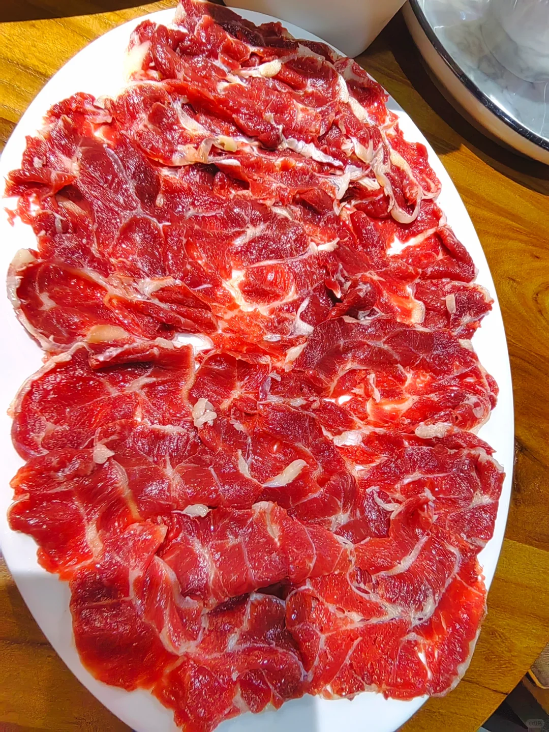 牛肉纹理清晰可见,颜色红润,还是鲜切的,