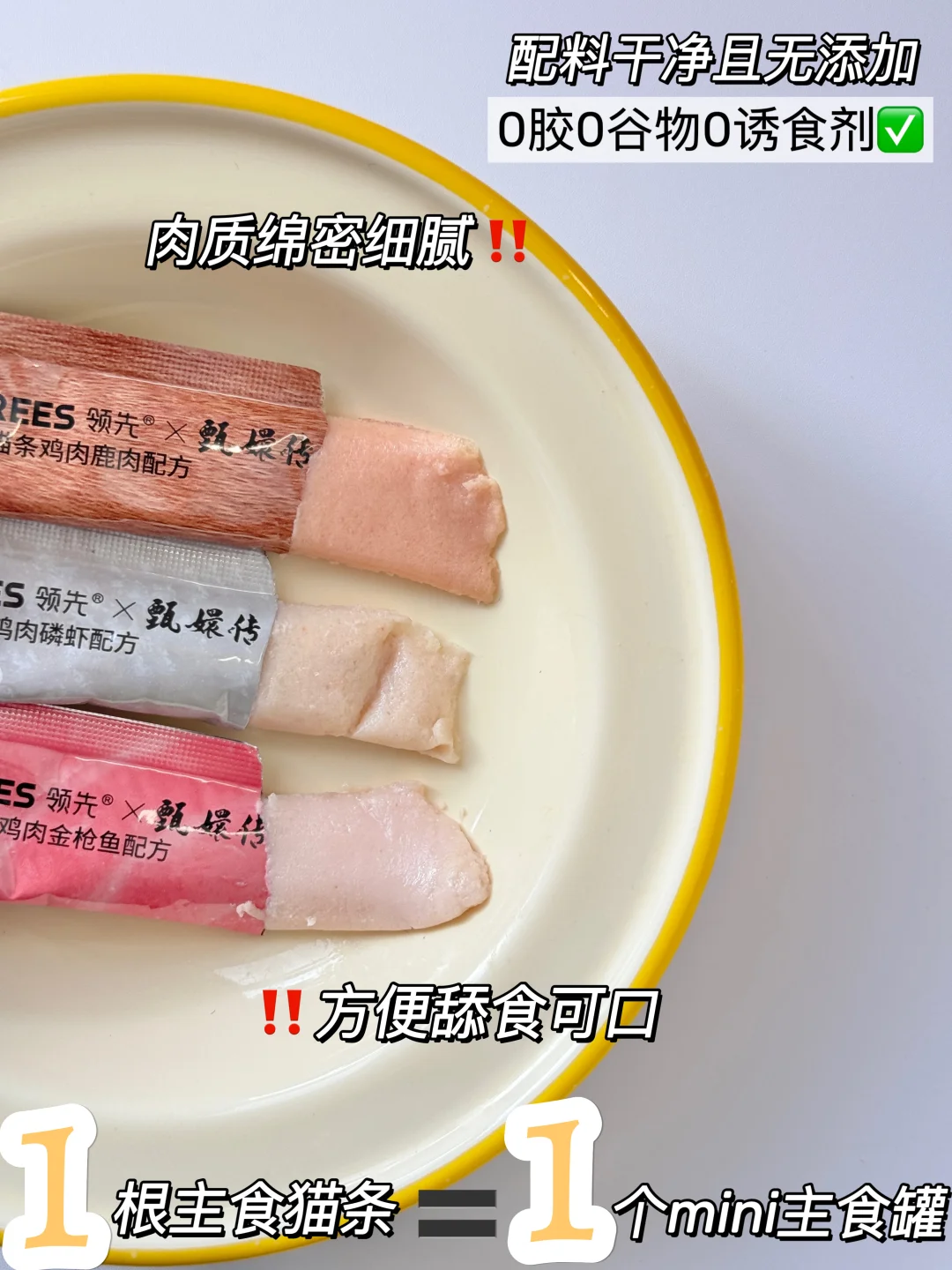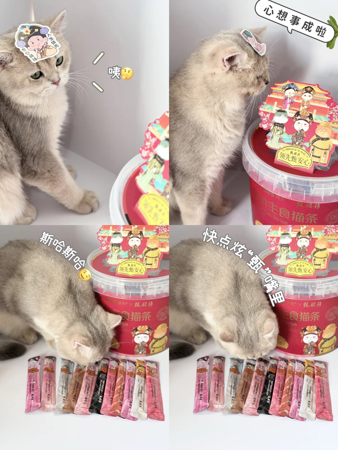 我真的是老甄嬛迷了!这次领先和甄嬛传的联名一出就让我炒鸡激动!赶紧又给毛孩子们🐱回购了这个领先主食猫条。之前没联名的时候就买过,猫咪们真心❤️喜欢。