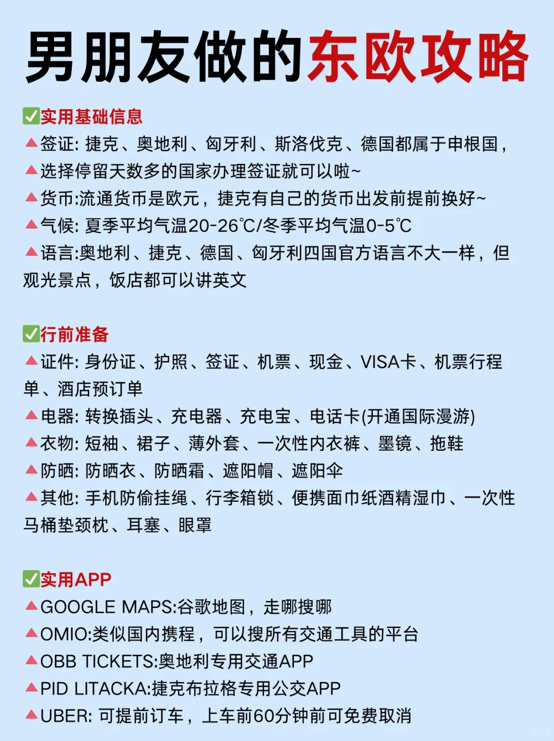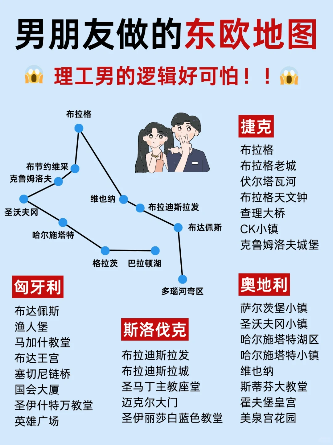 想趁暑假、国庆假期去东欧旅游,理工科男朋友二话不说,直接做了一篇超全的东欧旅游攻略。看完后差点长恋爱脑了,果然认真做事的男人最帅🥰