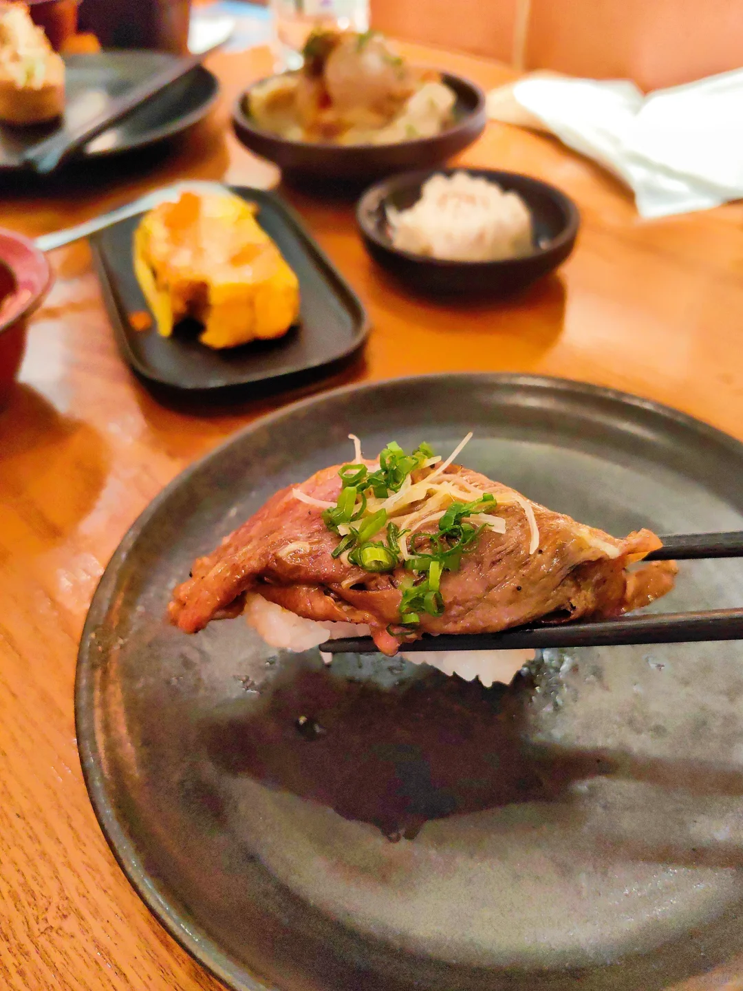 一口饭很小巧,可以吃到好几种味道,不过胡椒味有点过重了,不喜欢的朋友不推荐啦