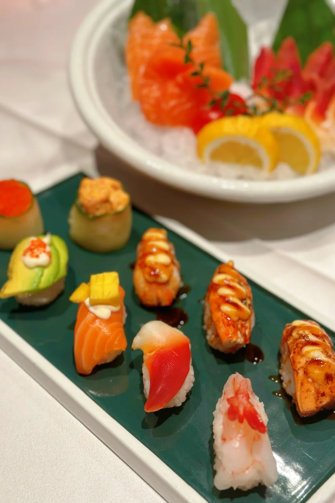 🍙mini寿司拼:必点!三文鱼(放了点芒果)、大虾、牛油果、蟹柳、龙虾酱沙拉…墙裂推荐!!!