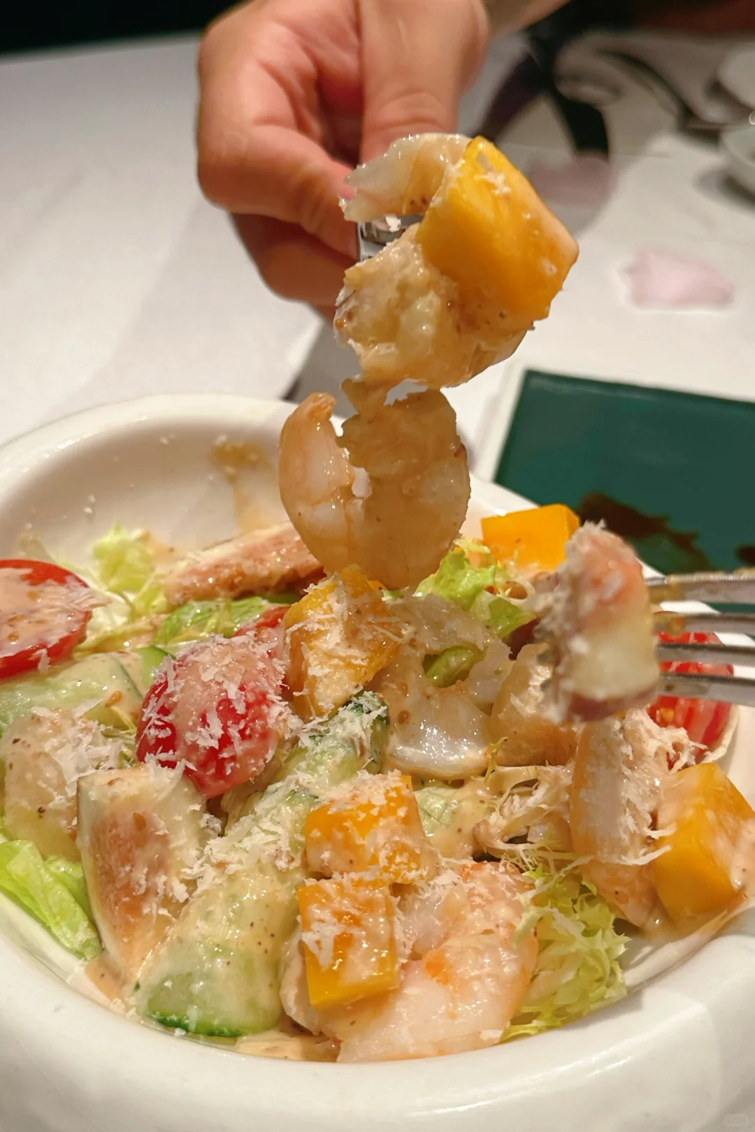 无花果大虾沙拉:牛油果没了,无花果意外的好吃,超级大的虾虾🍤,而且好多