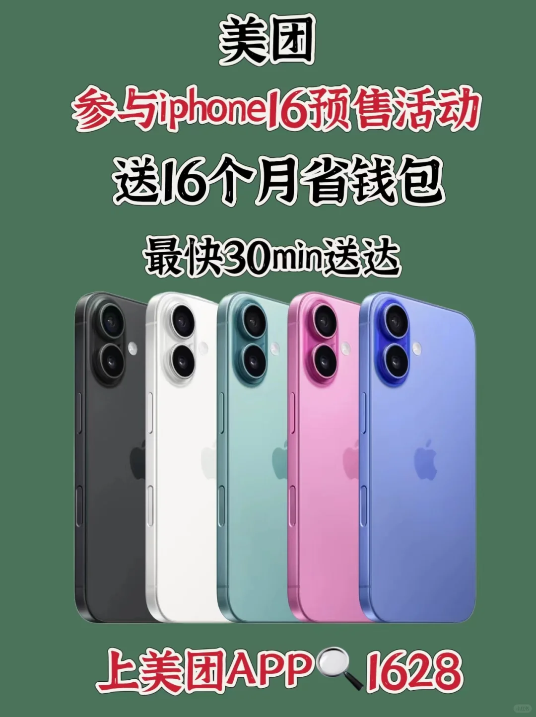 又到了一年一度🍎上新季 iPhone16马上发售,新机颜色好好看呀。 不想出门,但是想要,看到美团活动默默安排一下 🍎上美团App🔍【1628】进入活动页面 美团不仅最快30分钟送达 还可以12期0息分期 1600r券包,每个月赠100r券包(6张X5r无门槛+70r不同品类券) 连续赠送16个月,可以膨胀使用,吃喝玩乐都可以用 蹲好价的姐妹们码住 具体活动规则详见美团APP内,具体以实际情况为准