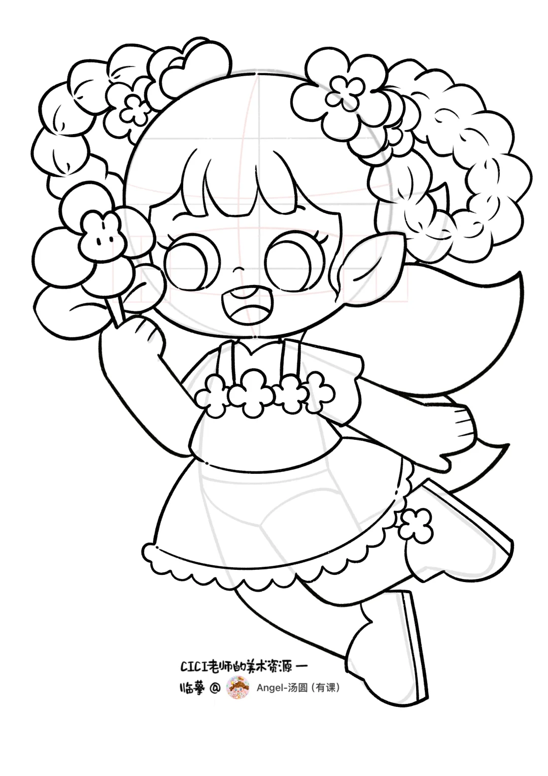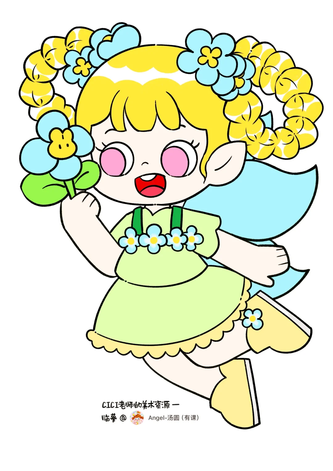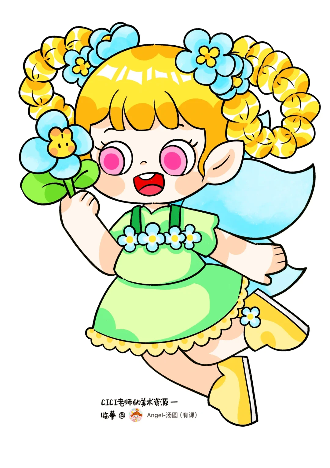 🎨2.5头身花精灵🧚🏻♀️,花卉主题系列儿童画。 📚临摹