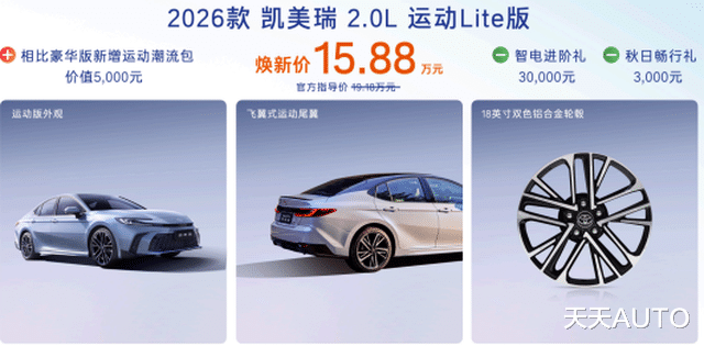 凯美瑞坚持“增配不增价”。全球运动版造型全面下放,全新推出2.0HSE运动LITE版,焕新价15.88万元起。2.0HV尊贵版新增白色内饰,并将PVM全景监控系统、蓝牙钥匙及律动氛围包下放至该版本及以上车型。2.5HEV车型的PKSB泊车辅助制动系统能力升级,可识别物体+车辆+行人,实现前向、后向主动安全防范全覆盖。