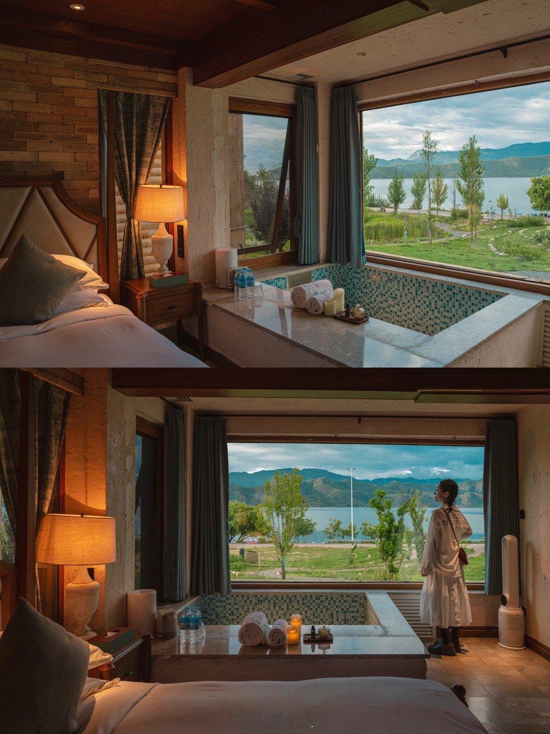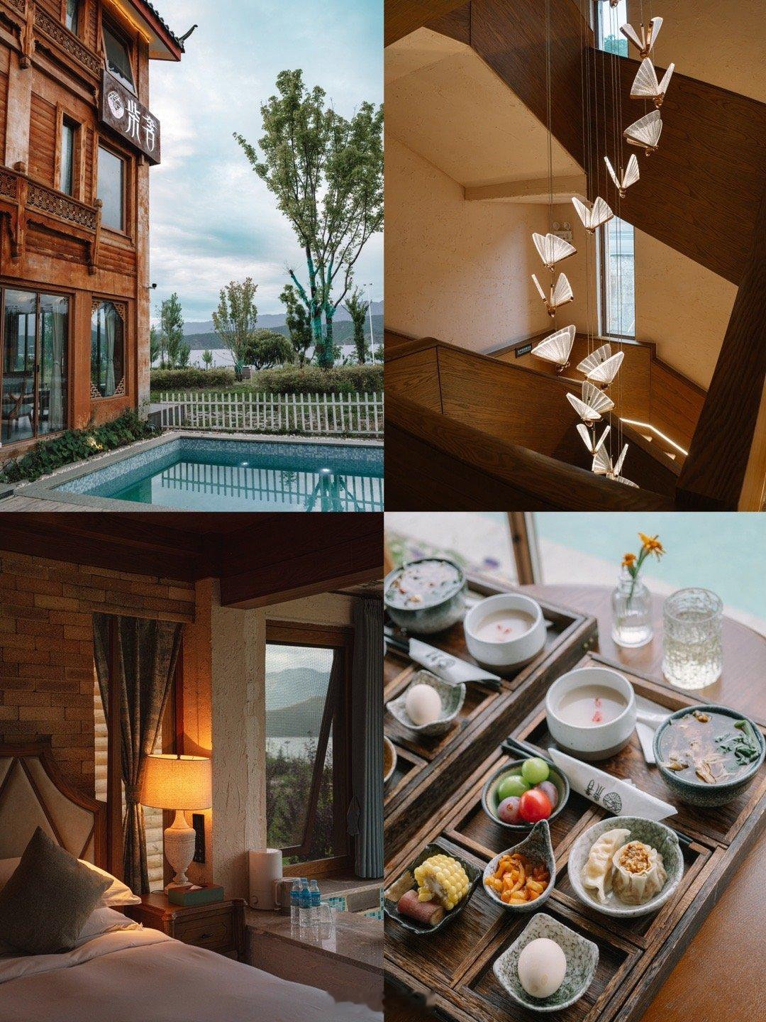 ◾️我们订的房间送了一份精致下午茶,坐在泳池边,看着泸沽湖平静湖面,完全不想出酒店了!甜品和咖啡都很赞哦!