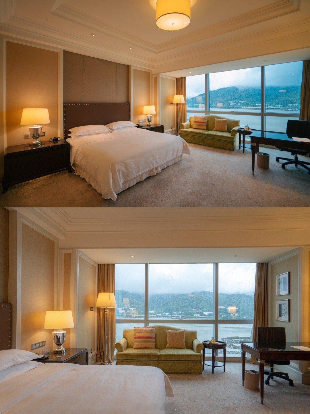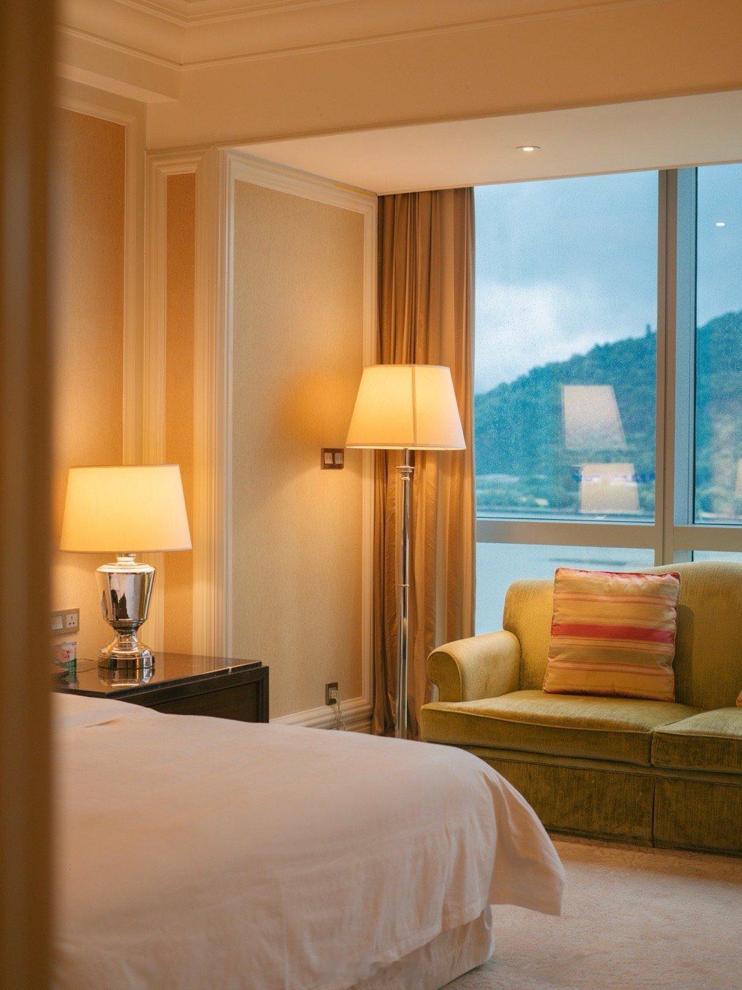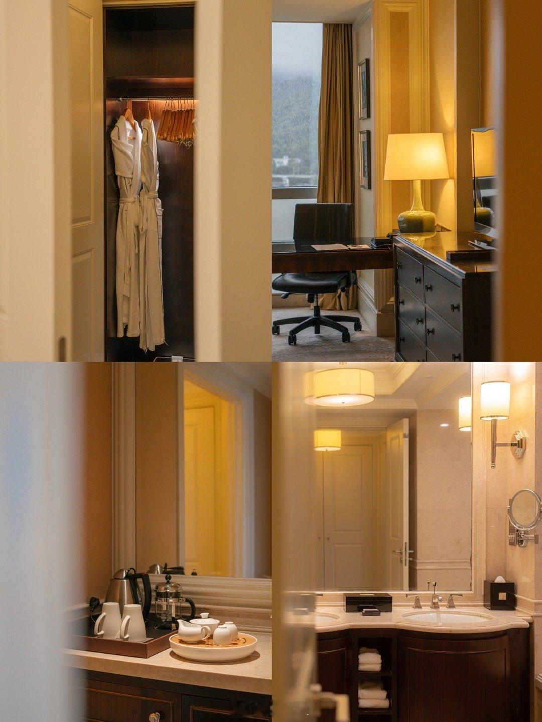我们入住的是江景房,房间的空间超级大,一整面的落地窗直对闽江和鼓山,风景极其好,躺在床上就能欣赏。
