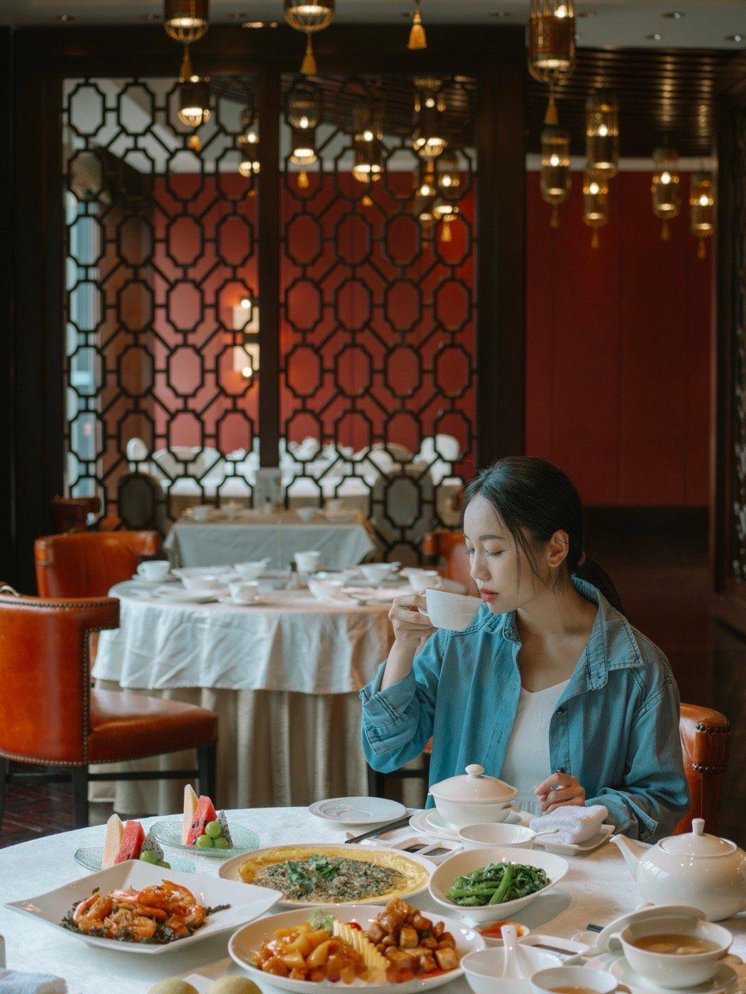 我强烈推荐酒店的中餐厅【采悦轩】,这个纯纯中式风格的餐厅也太好看了!大红色的主题色,一点都不俗气,反而精致又高级!
