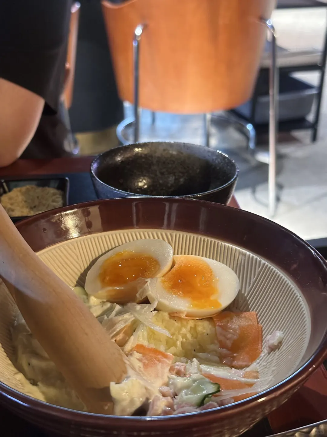 土豆泥🥔培根🥓沙拉口感很丰富,小哥哥也会帮忙捣碎好😻