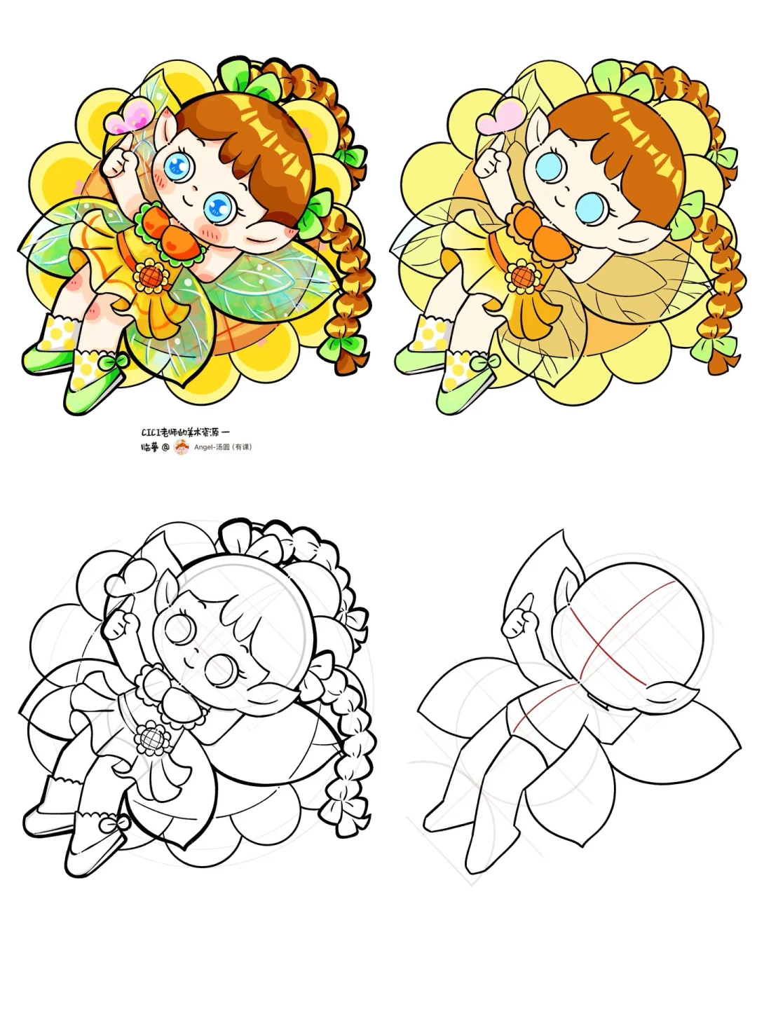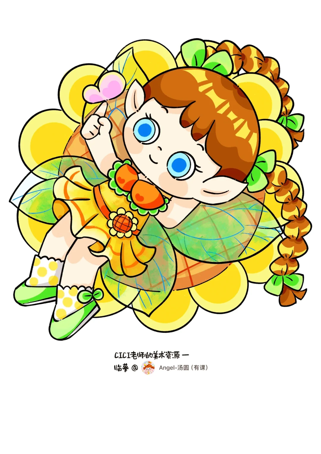 🎨2.5头身花精灵🧚🏻♀️,花卉主题系列儿童画。 📚临摹