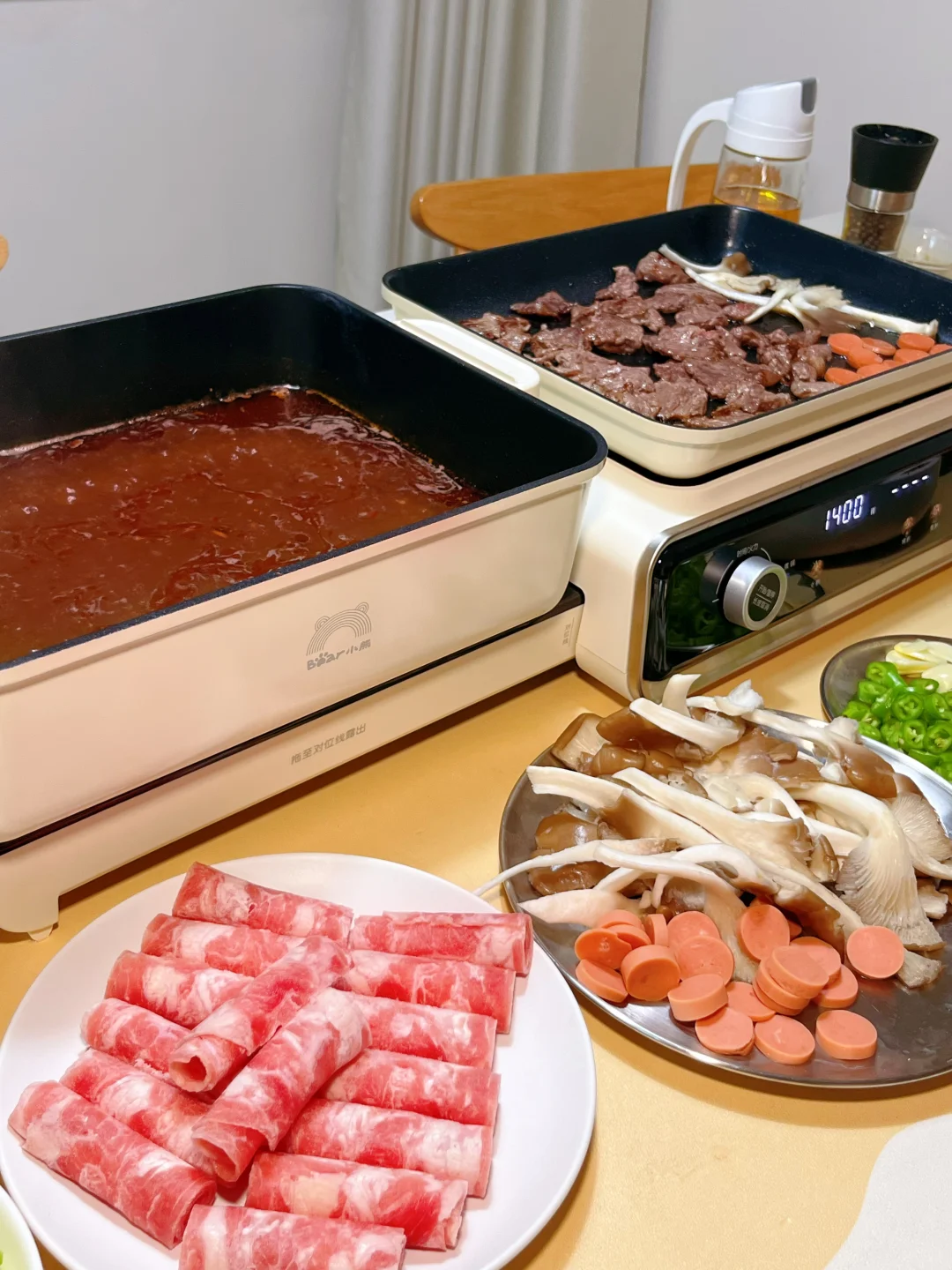 抽屉式设计,可以一边吃烤肉一边吃火锅🤤再也不用纠结吃哪个了👍