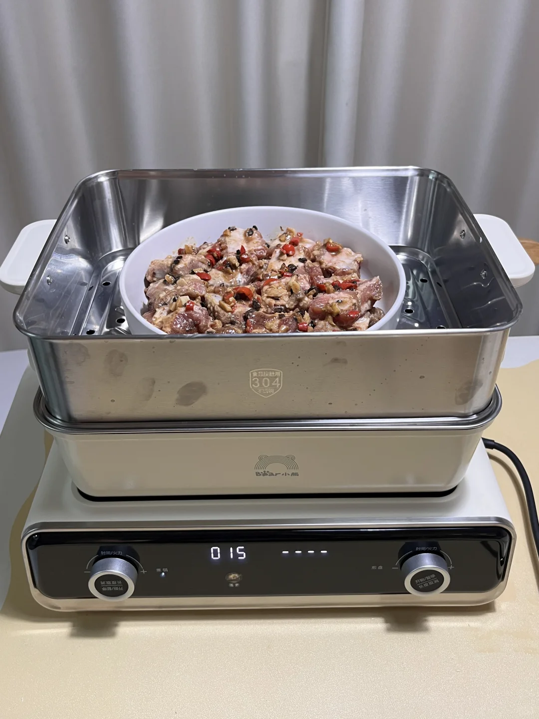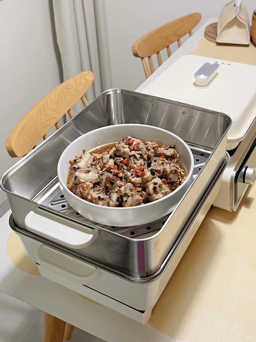 它的6L大蒸笼 一整条鱼都放得下, 平时还能预约定时蒸早餐、隔水炖,很方便实用