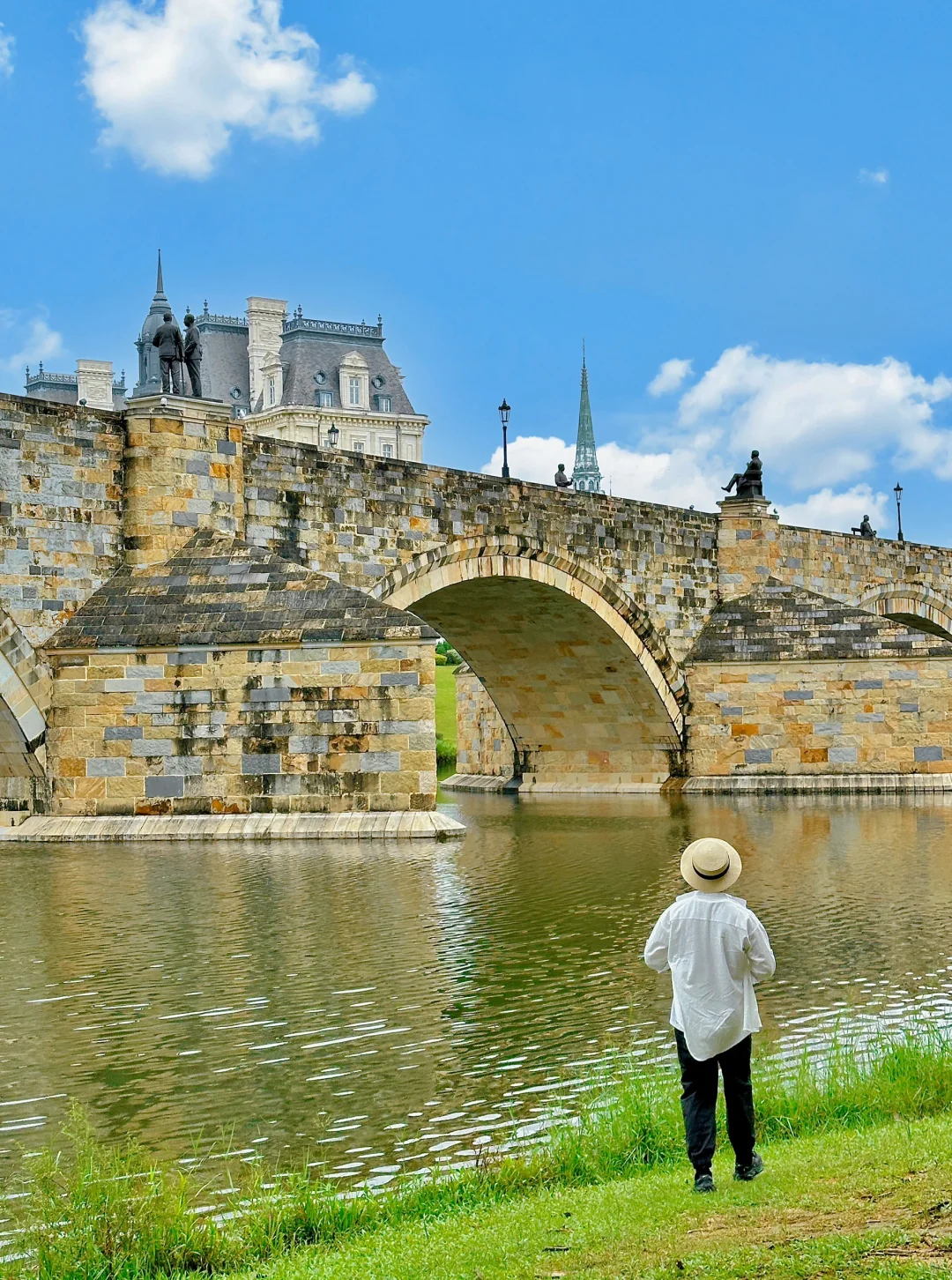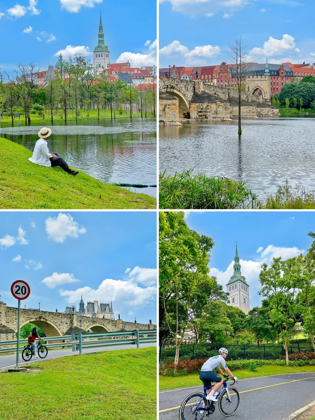 以背华为小镇的欧式建筑群为背景,这边在草地上站坐都可。(评论区有机位图)
