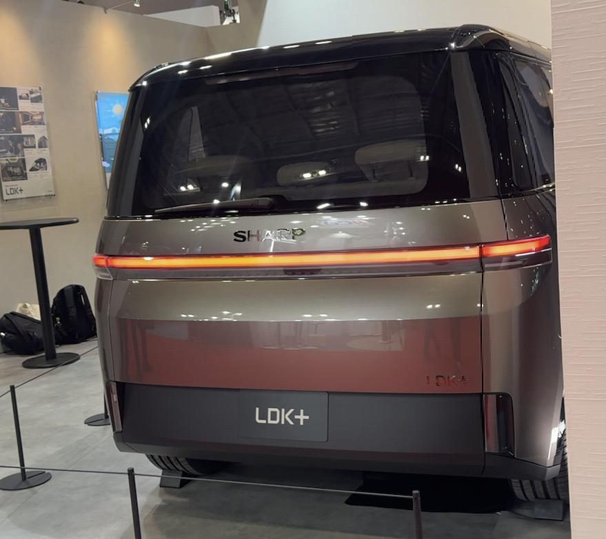 夏普全新LDK+概念车车身左侧采用无B柱造型,左侧配备滑动门、传统造型外后视镜和门把手,不过车身右侧则配备传统外开车门。本次亮相车型搭载熏黑封闭式轮辋,内部具有多条辐造型。车辆尾部同样与车头造型相呼应,采用方正的设计,并配备有贯穿式尾灯。