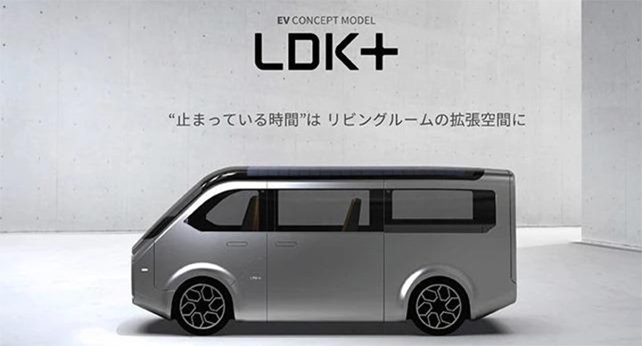 LDK+是“生活(Living)、餐饮(Dining)、厨房(Kitchen)+”的缩写,新车基于鸿海科技集团(富士康)的Model A纯电动车型打造而来。驾驶座和副驾驶座之间配备有桌子和投影仪的控制台,配合可向后旋转的驾驶座,将安装在后排座椅上方的屏幕向下拉,即可在大屏幕上观看电影或进行在线会议。官方称这种设计为“客厅的延伸”。