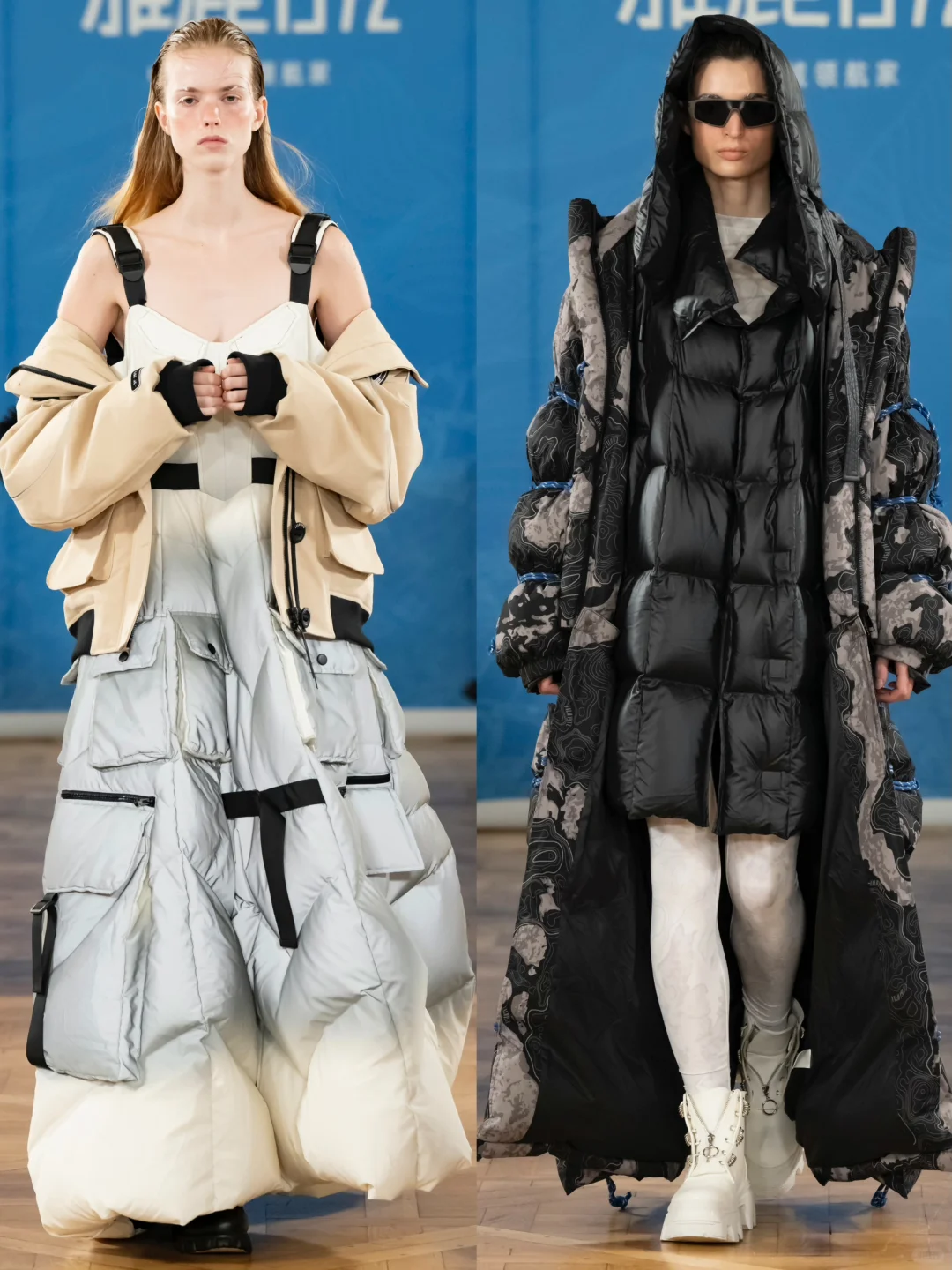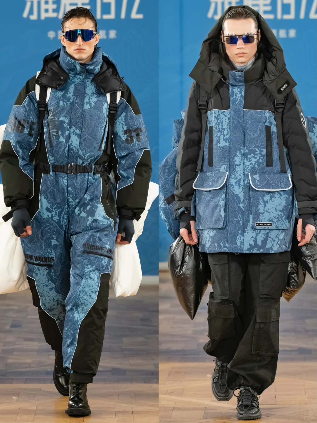 ✨ 本次大秀以“羽绘沧海,鹿鸣新辰”为主题,摒弃多余的设计,雅鹿标志性的迷彩印花分别穿插其中,同时科技面料与鲜亮色调交织,展现出和谐的时尚感。除此之外,来自英国的饰品箱包品牌Pinkdrizzle 和雅鹿第二次联名合作,向全世界展示了中国羽绒服品牌的非凡魅力与前瞻视野。