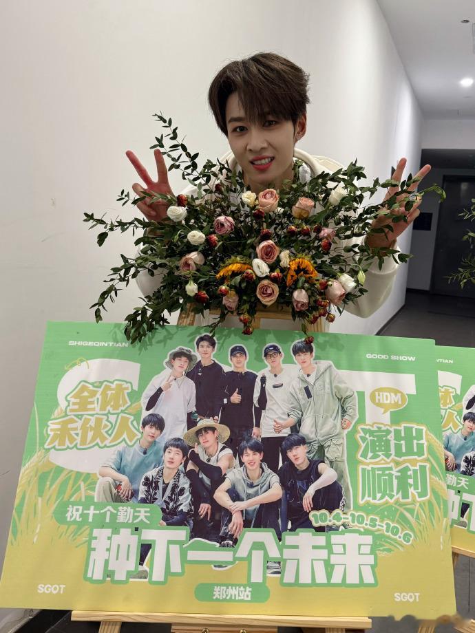#卓沅郑州演唱会收官照##卓沅晒演唱会捧花照#卓沅的郑州演唱会圆满收官,捧花照见