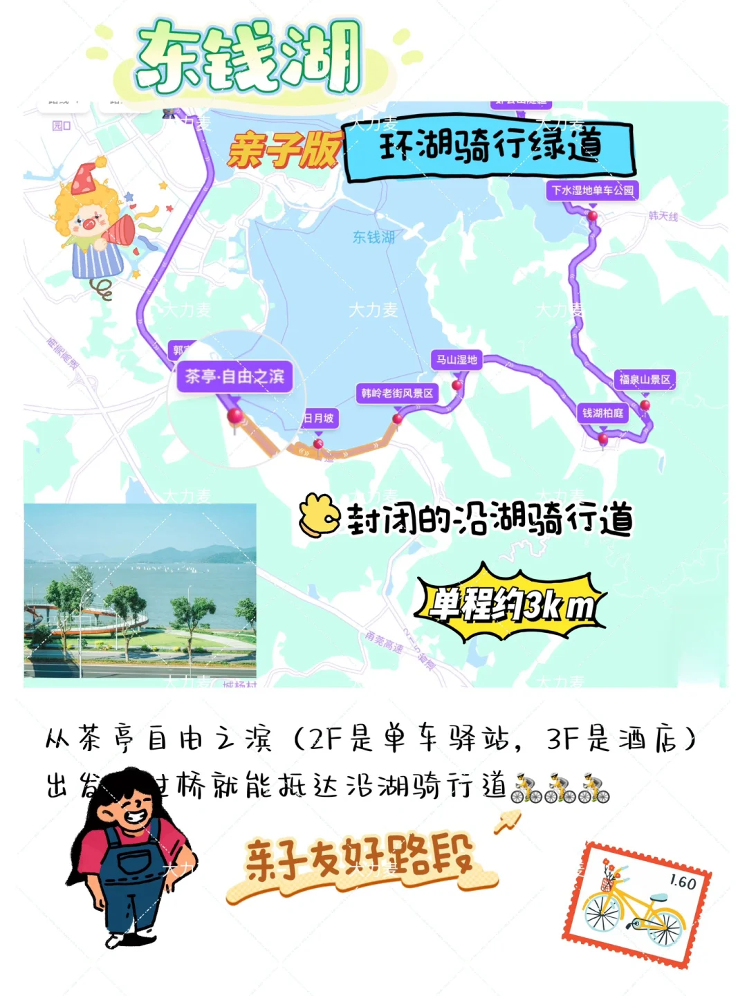 ②东钱湖环湖一圈约30km,亲子骑行请参考下文标注出来的环湖封闭路段,不要带12周岁以下儿童到环湖的公共道路骑行;