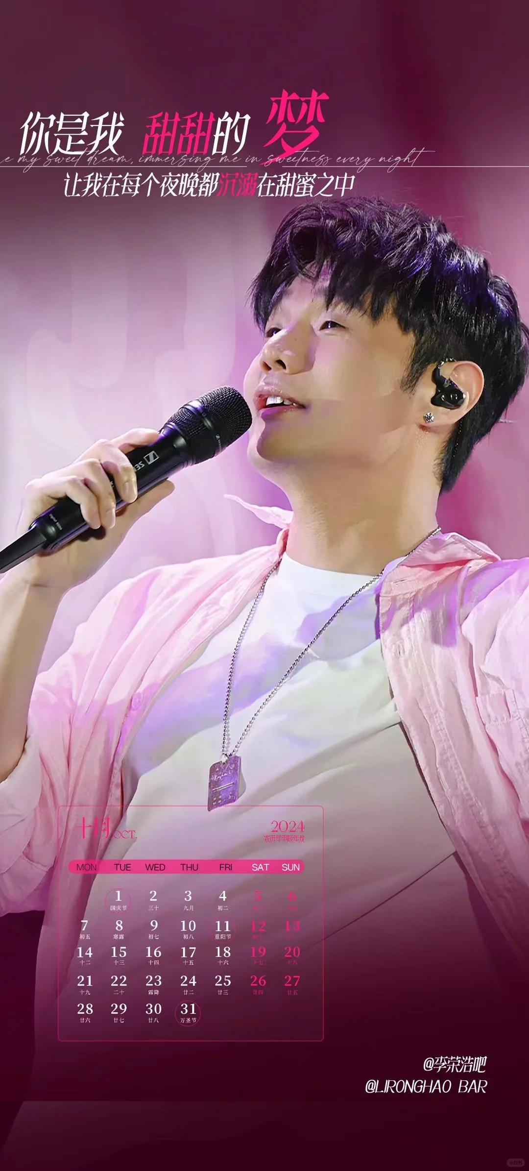 日历壁纸 李荣浩 李荣浩纵横四海 李荣浩纵横四海龙年巡回演唱会 十月壁纸!快来查收!!