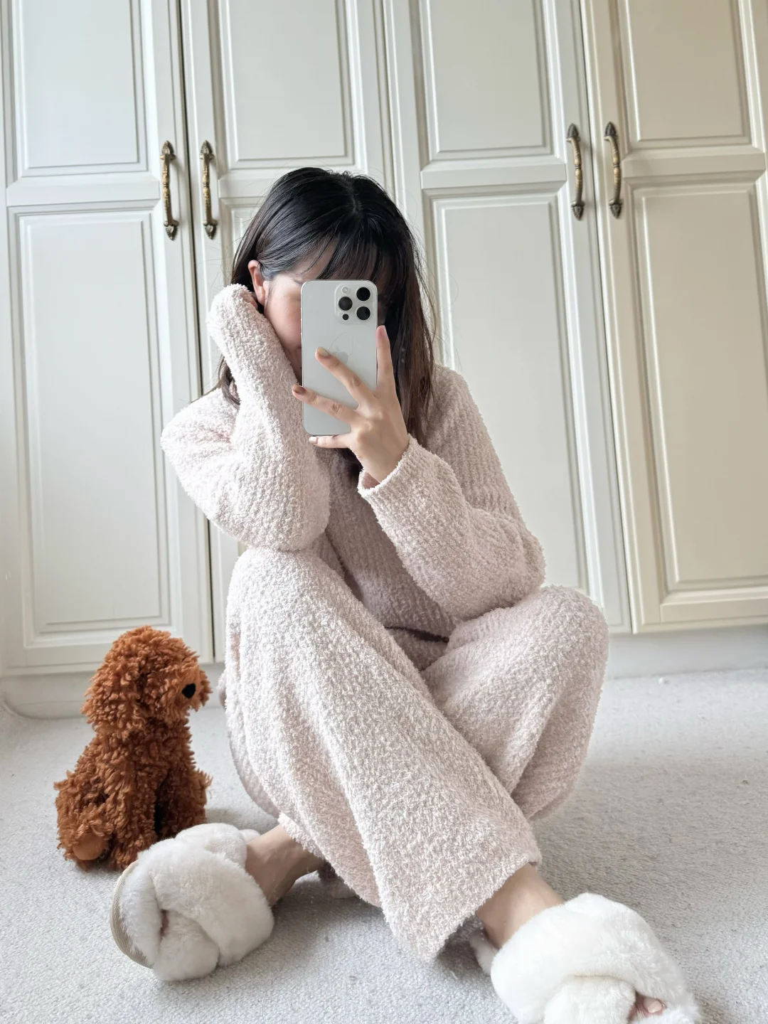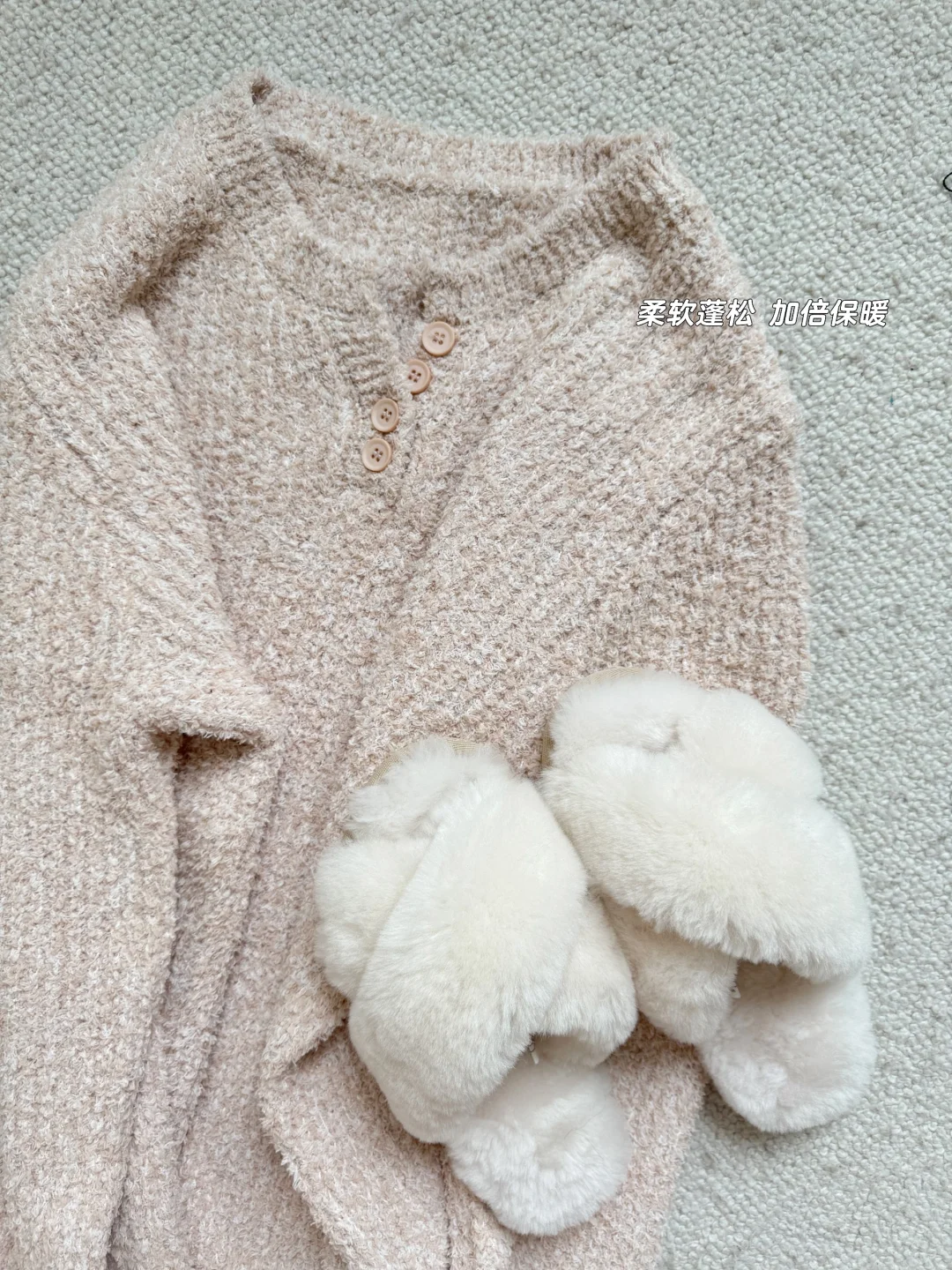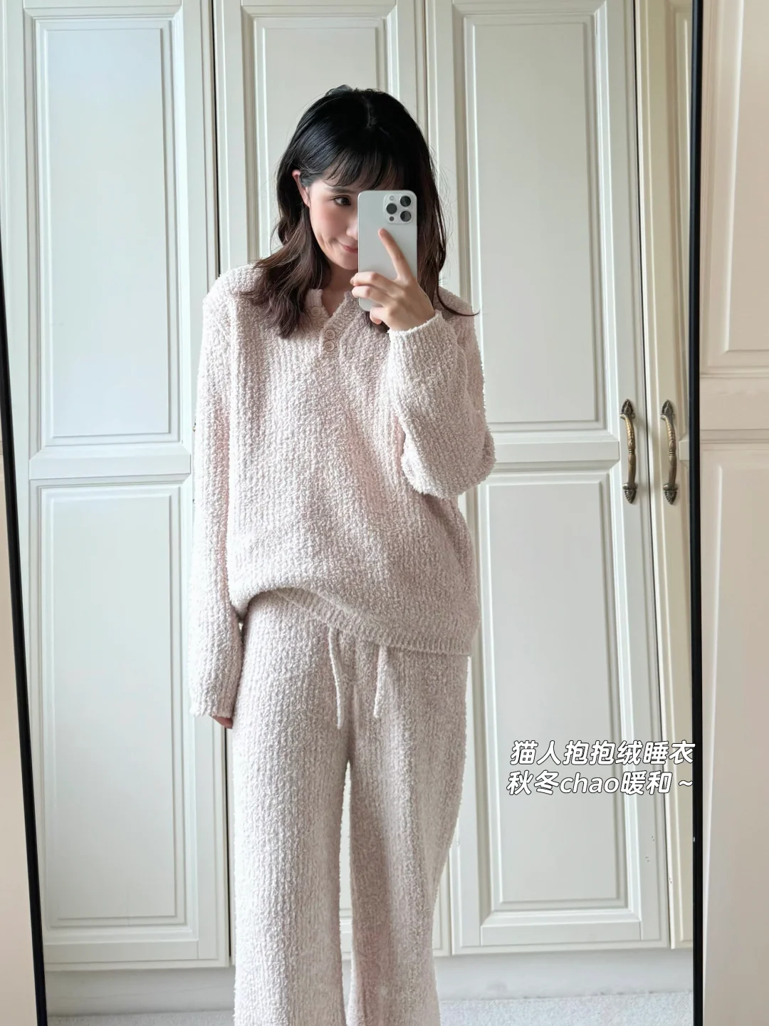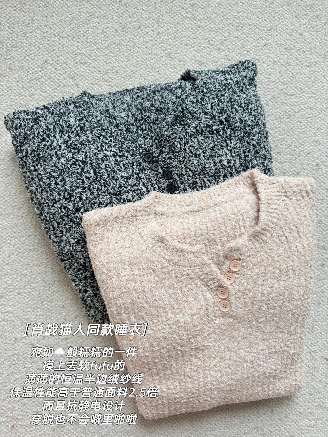 分享一些喜欢~ 提前为秋冬准备了“猫人睡衣☁️” 保暖又透气的半边绒材质 质地柔软不掉毛 外穿就是自在慵懒的状态 还有居家的毛绒拖鞋 一套下来安全感满满 尤其是下雨天☔️宅家 点上一支幽淡的香薰蜡烛 等香气弥漫开 幸福疗愈指数💯