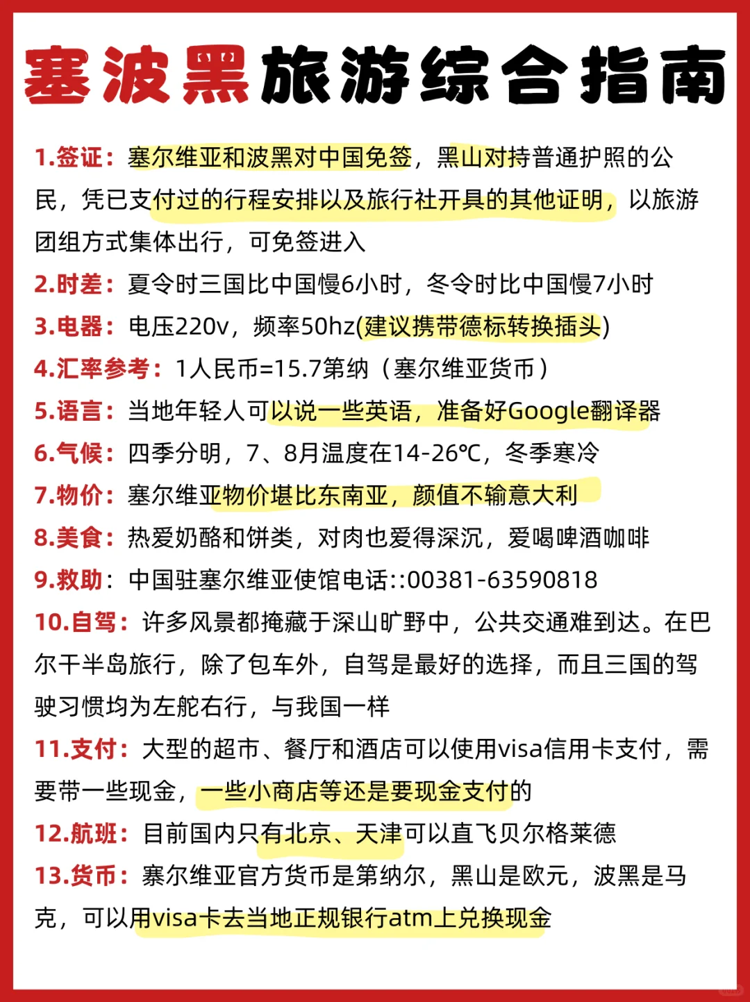 这样既浪费时间,玩的也不愉快~今天我就把塞尔维亚+波黑+黑山旅游当地的一些情况分享出来给大家‼️