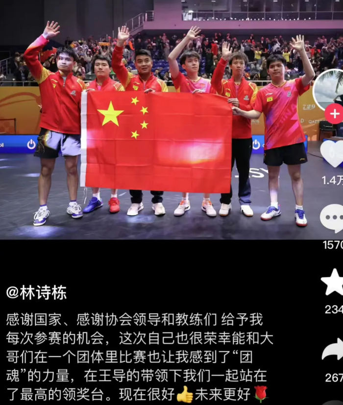 王楚钦每次大赛后发文,混双照片基本都在九宫格的中间,林诗栋亚锦赛后发文,感谢了一