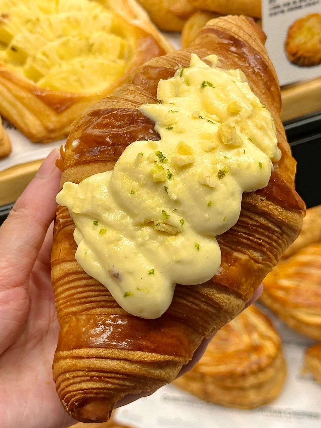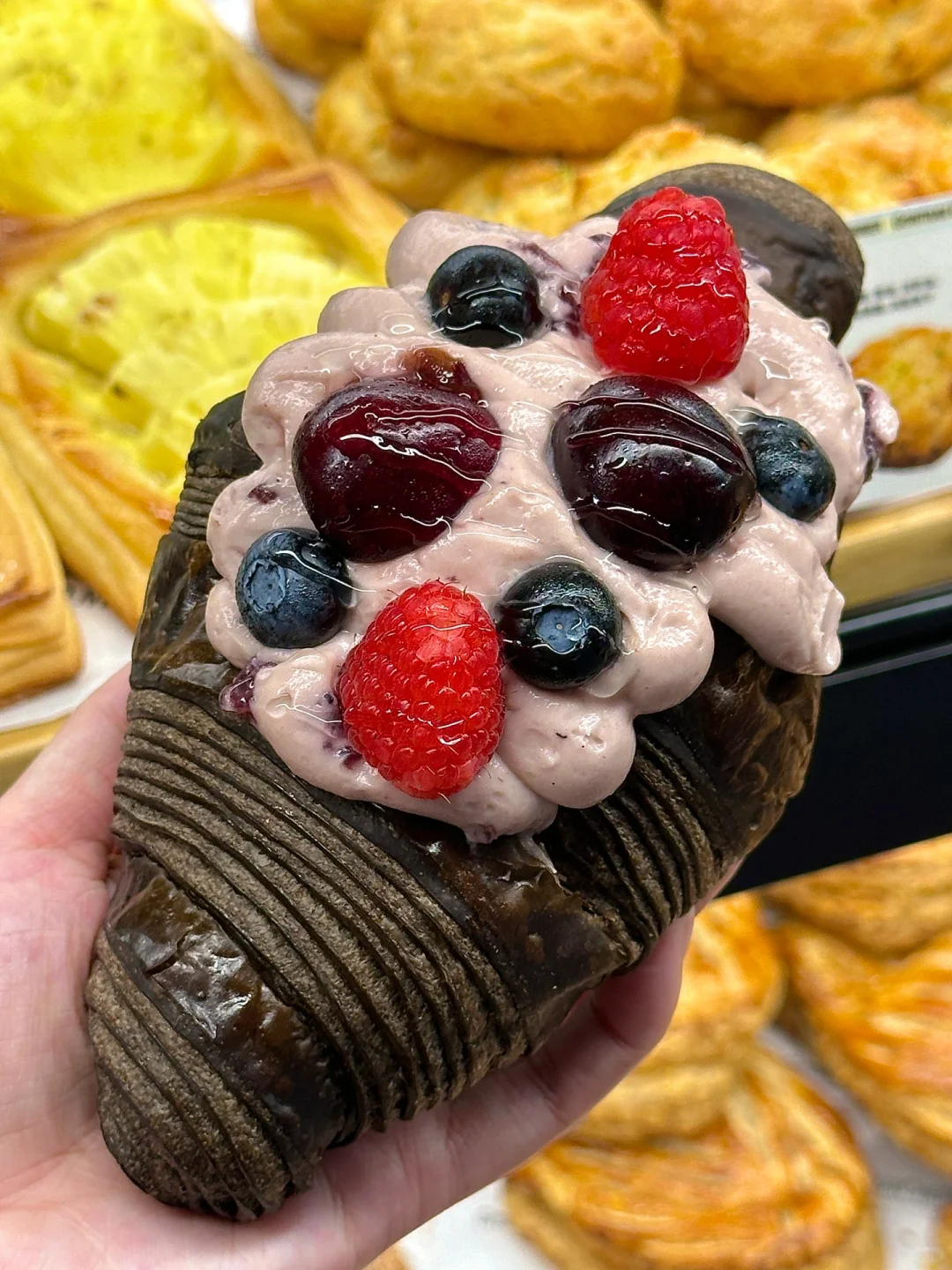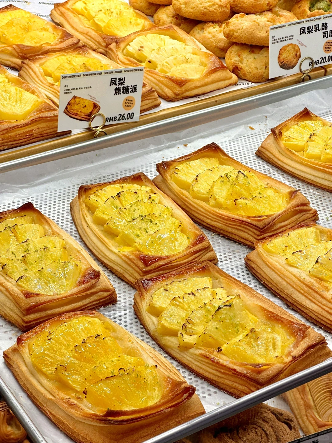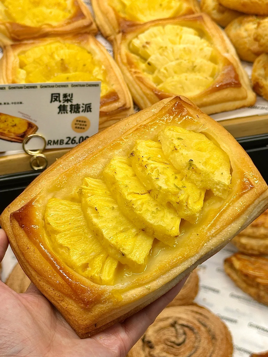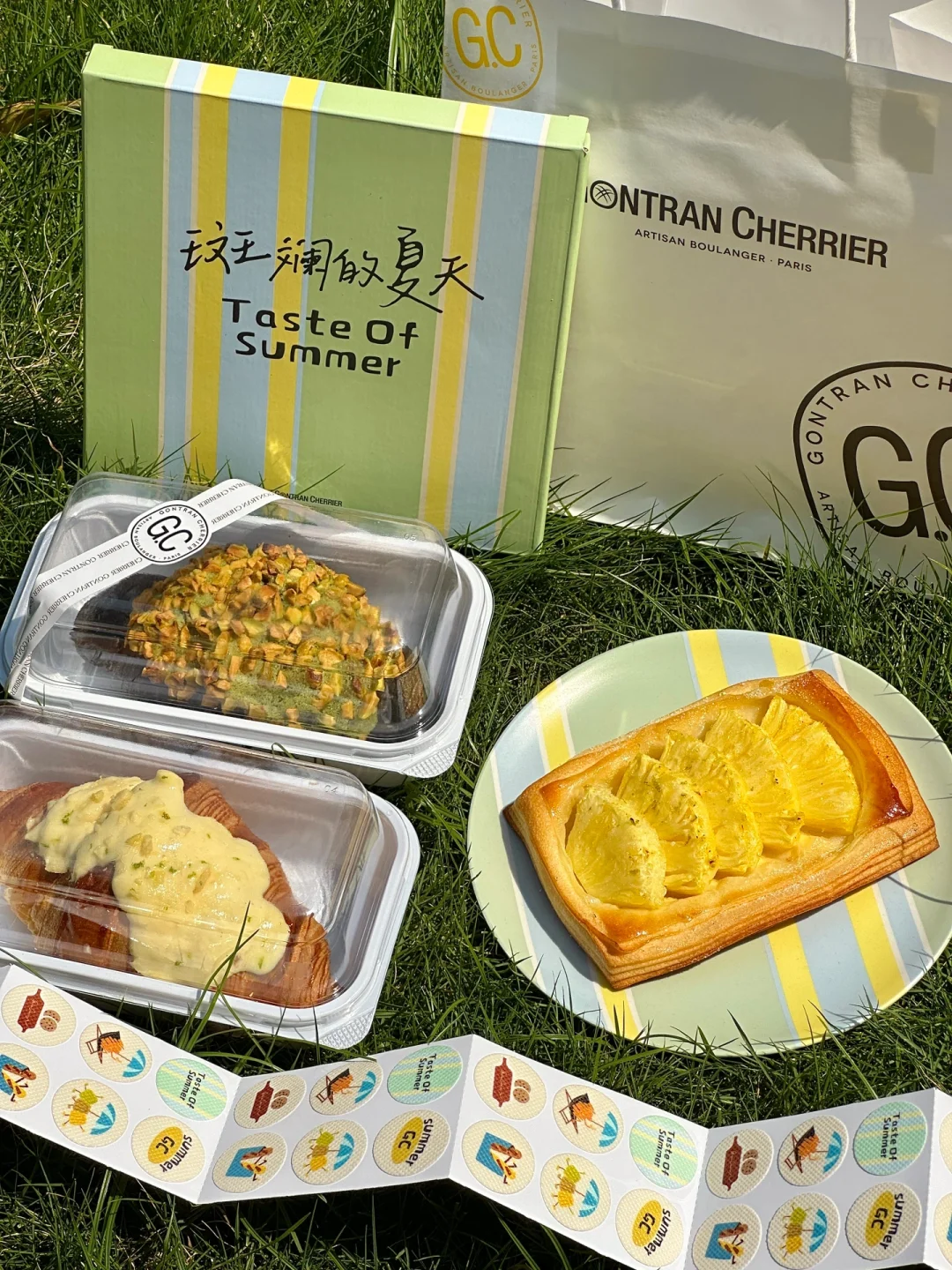 来太古汇一定要逛逛这家面包店 发现他们家最近出了几款新品 面包脑袋必须带走一袋子🥹 - ✔️莓果奶油可颂 色彩斑斓太合适这个夏天了🌈 卡仕达奶油上面铺满了水果 奶油内馅冰冻后就像冰淇淋一样哦 - ✔️榴莲奶油可颂 榴莲控狂喜啊啊啊~😍 拿在手上已经闻到浓郁的榴莲味 榴莲肉和奶油内馅➕酥脆的可颂口感很丰富 - ✔️凤梨焦糖派 铺满凤梨果肉酸酸甜甜好清爽🍍 外皮酥脆搭配的卡仕达酱入口鲜甜 - ✅团go套餐还🉐周边野餐盘 ✅小打卡🉐防蚊贴