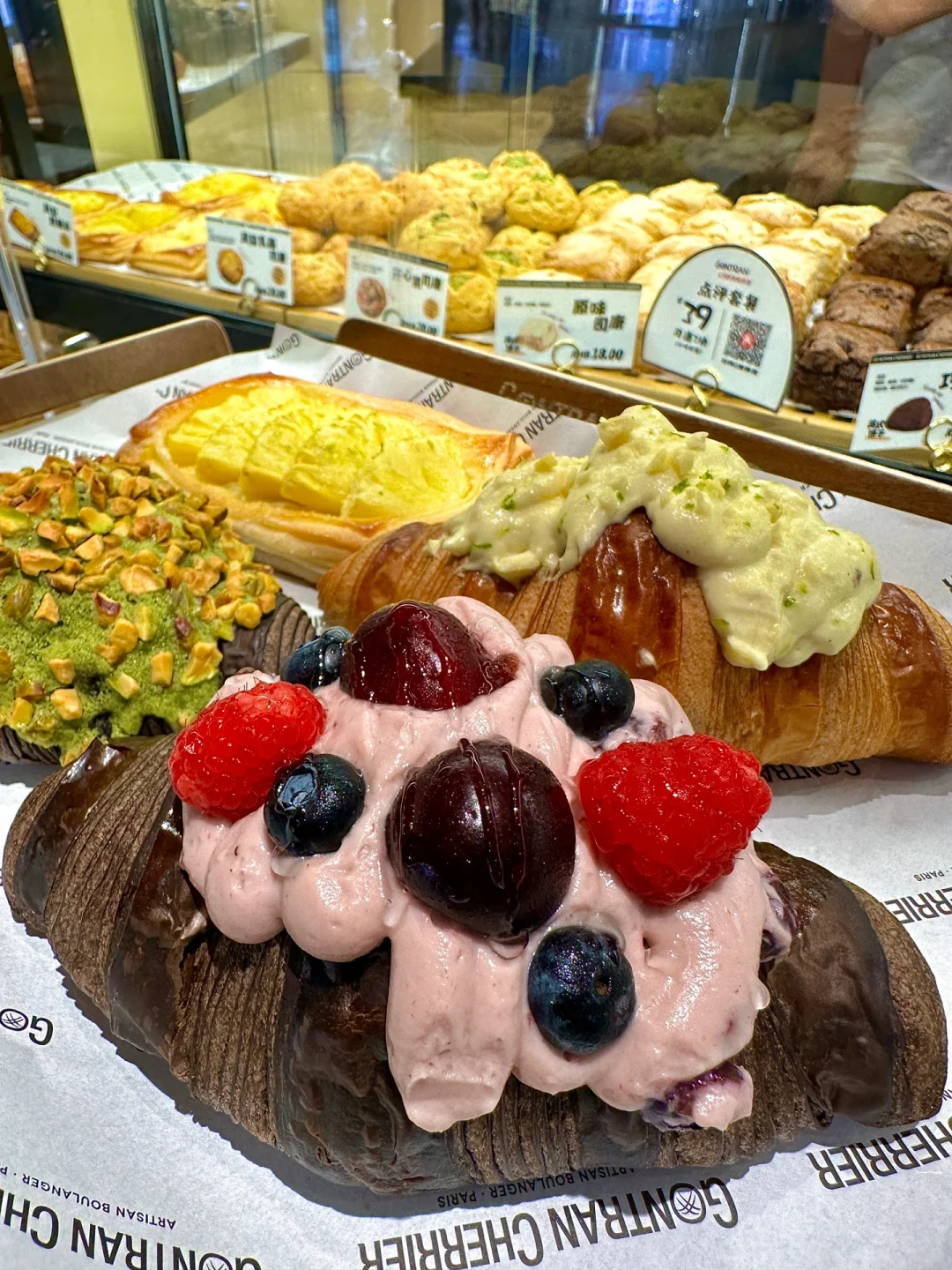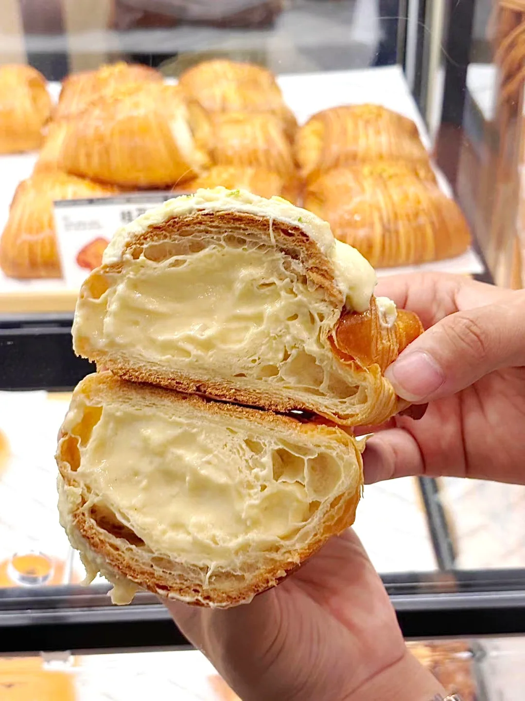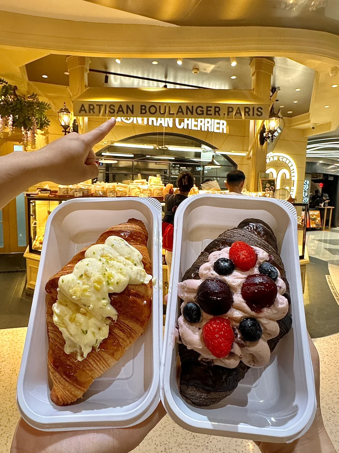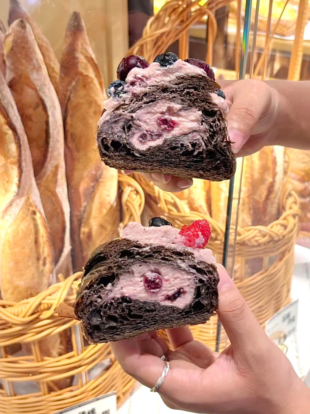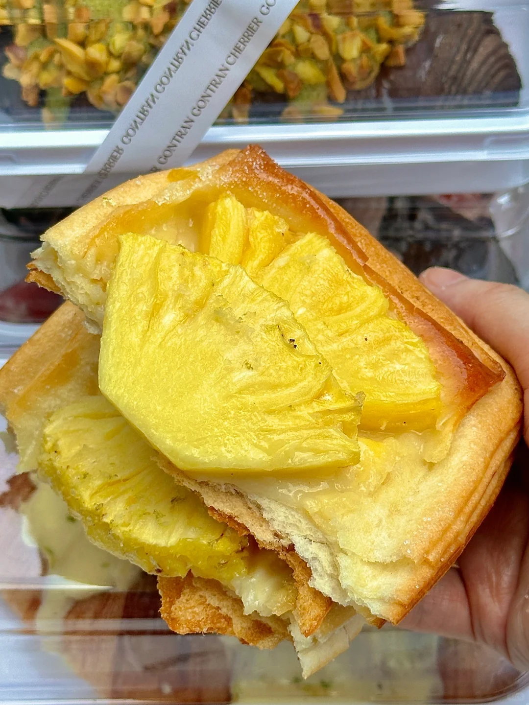 来太古汇一定要逛逛这家面包店 发现他们家最近出了几款新品 面包脑袋必须带走一袋子🥹 - ✔️莓果奶油可颂 色彩斑斓太合适这个夏天了🌈 卡仕达奶油上面铺满了水果 奶油内馅冰冻后就像冰淇淋一样哦 - ✔️榴莲奶油可颂 榴莲控狂喜啊啊啊~😍 拿在手上已经闻到浓郁的榴莲味 榴莲肉和奶油内馅➕酥脆的可颂口感很丰富 - ✔️凤梨焦糖派 铺满凤梨果肉酸酸甜甜好清爽🍍 外皮酥脆搭配的卡仕达酱入口鲜甜 - ✅团go套餐还🉐周边野餐盘 ✅小打卡🉐防蚊贴