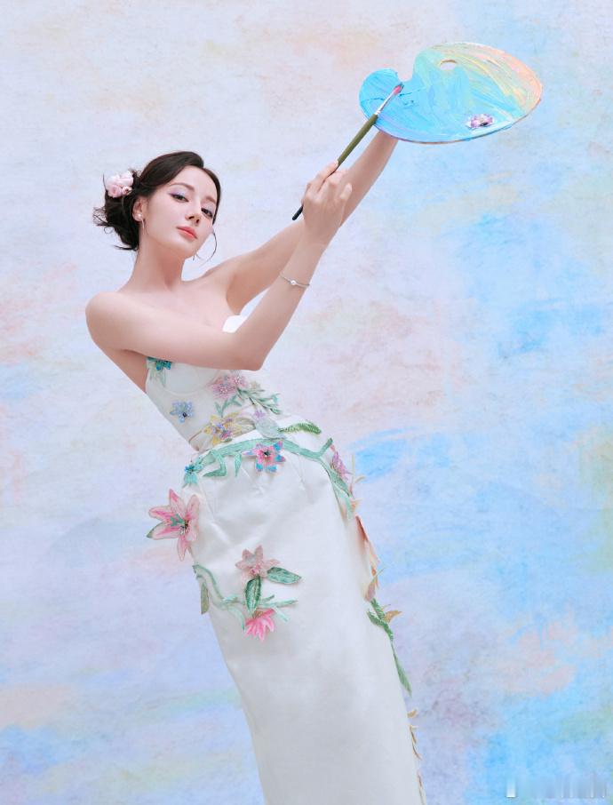 #迪丽热巴油画花仙子既视感##迪丽热巴用花枝绘出最美的玫瑰#迪丽热巴仿若油画花仙