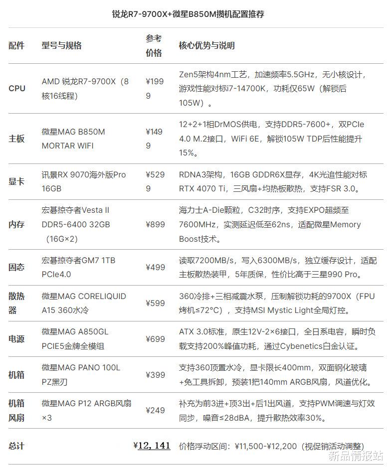 性价比突出:当前R7-9700X价格约1999元,搭配微星主板套装购买更享Steam春促折扣,整机预算控制在万元内即可获得旗舰级体验。