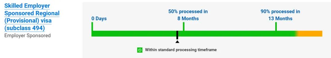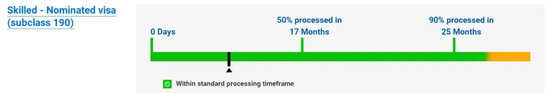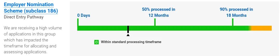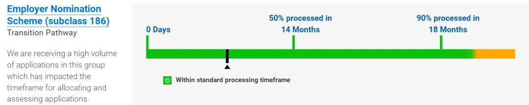 50%的审理在12个月内完成,90%的审理在18个月内完成;186雇主担保永居签证过渡类别(TRT):