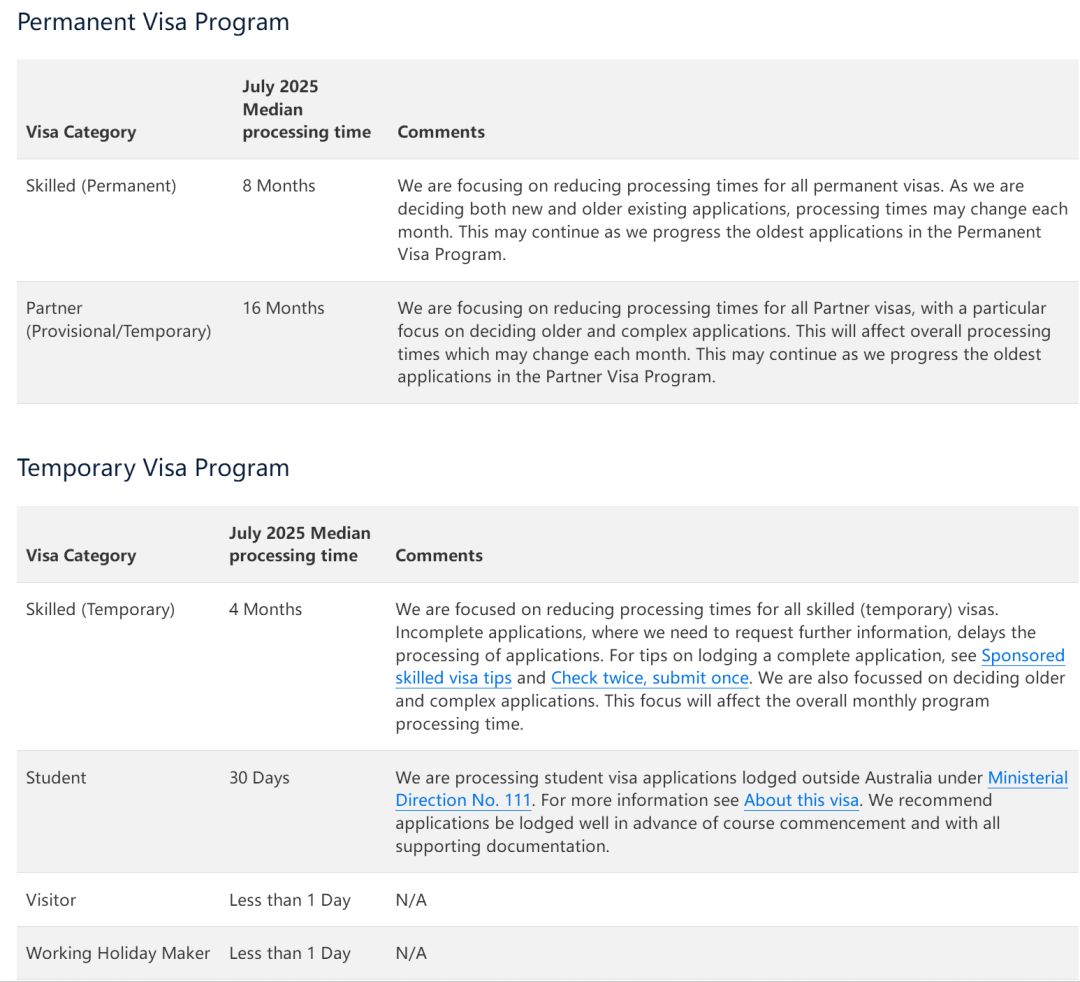 9月24日,澳洲移民局更新各类签证的审理时间,对比上一轮公布的时间,各类签证审理变化不大,技术移民类签证仍在清理积压。