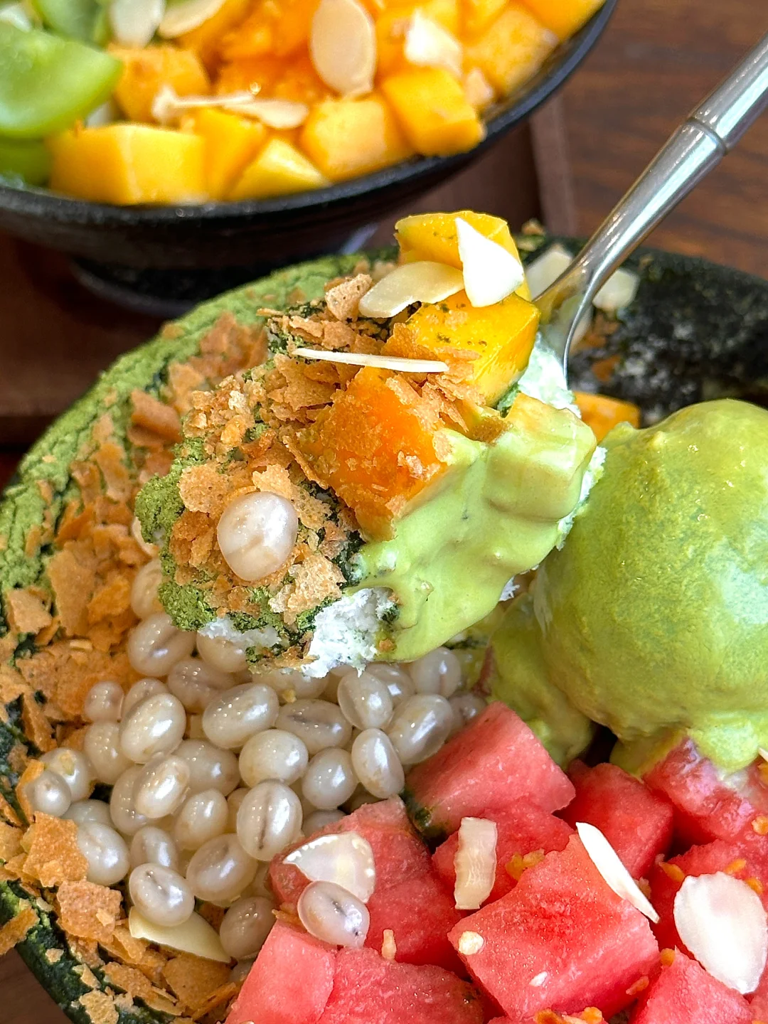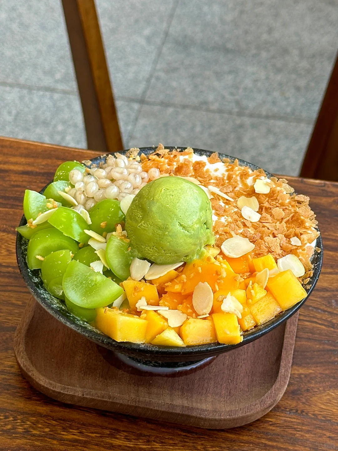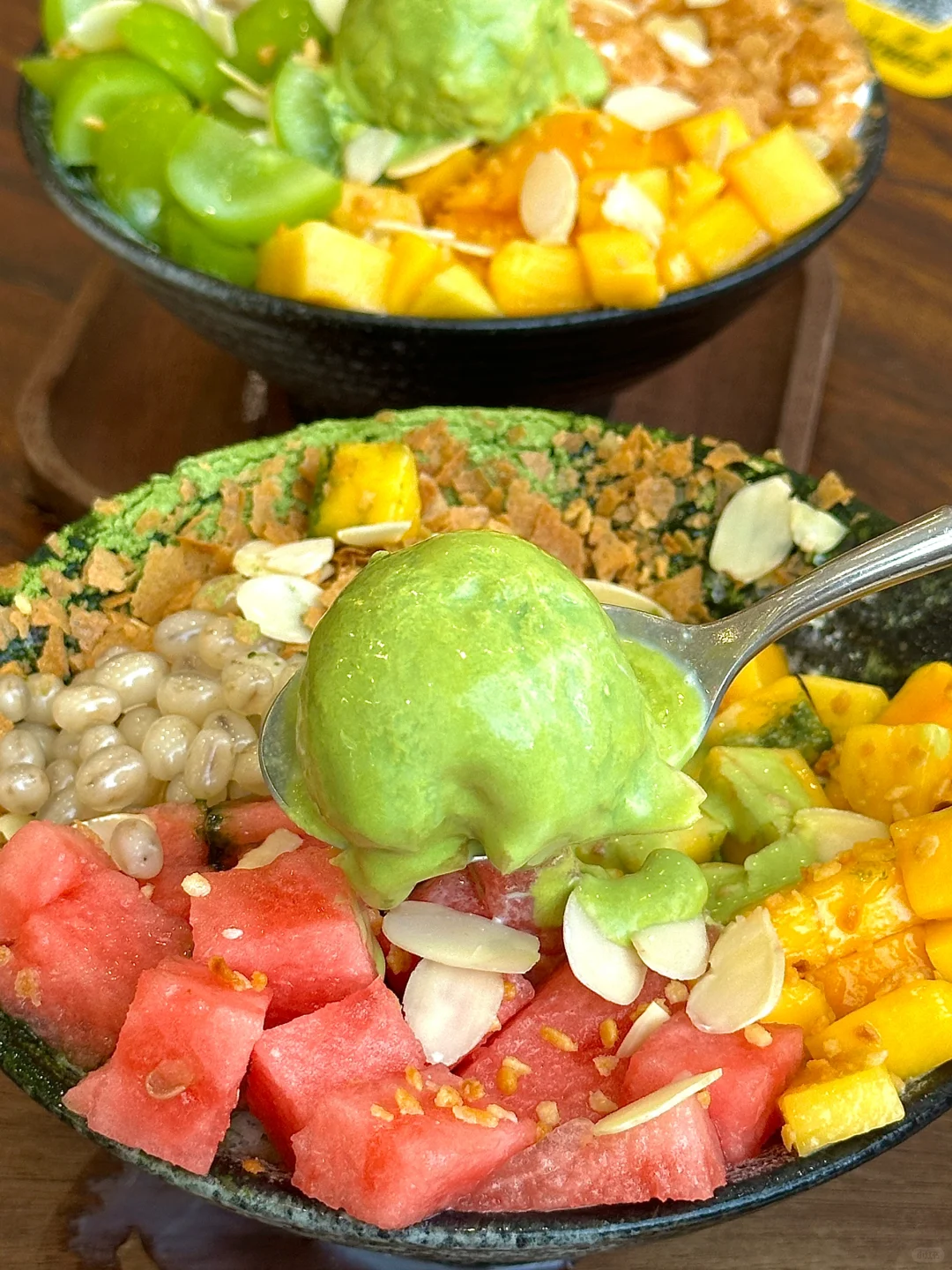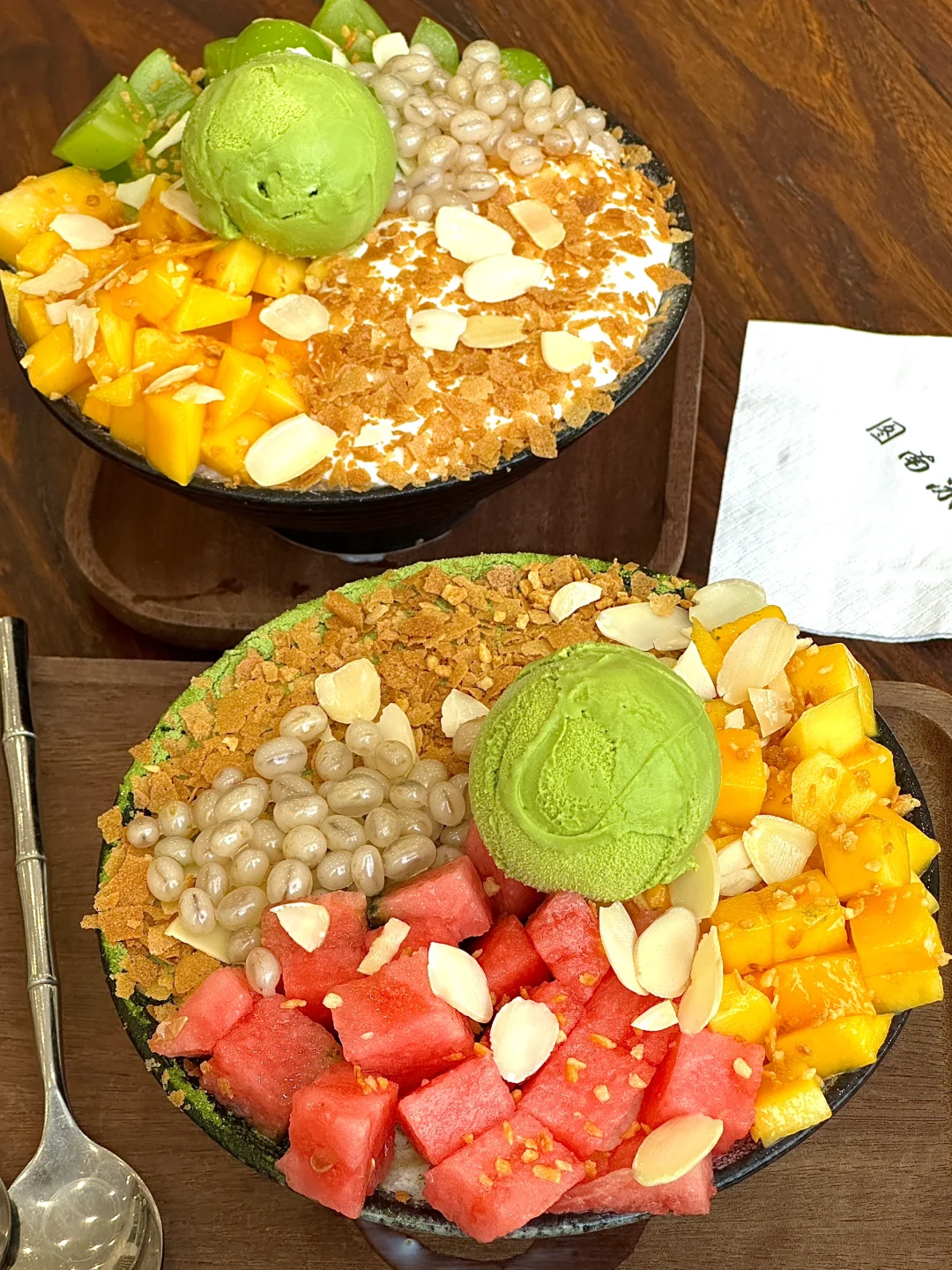 这家之前在大良吃过,后来容桂也开了 独栋小房子,位置多了 中午12点半来到开始陆续坐满人 - ✔️抹茶芒果西瓜牛奶冰 ✔️芝士芒果青提牛奶冰 一大碗满满当当的水果,都是20+左右 抹茶控、芝士控一定要冲🥹 -