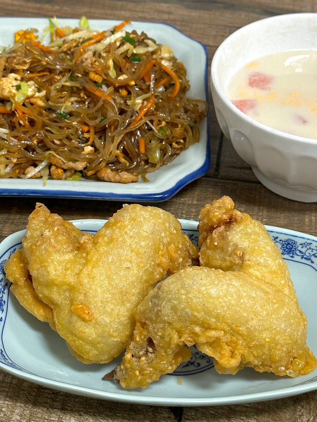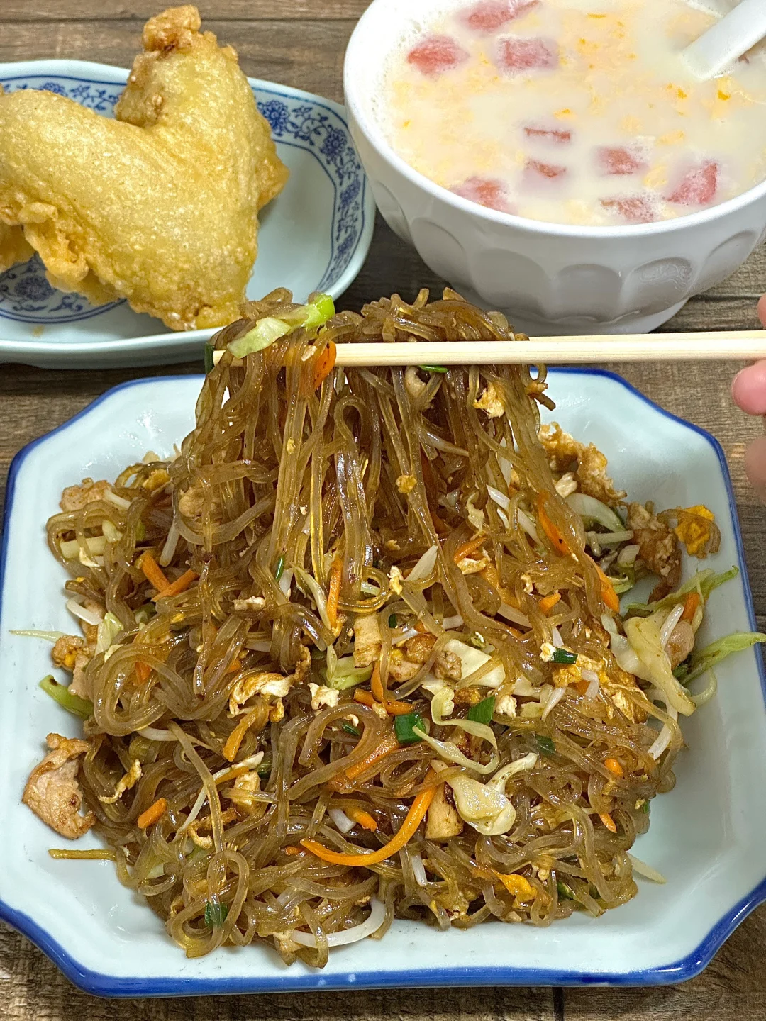 作为广州人真的好爱潮汕美食 就在市桥街道旁不起眼的一家 晚上依然坐满人,估计来吃宵夜的 ✔️炒粉签(现炒的好有镬气) ✔️豆浆(自己加各种小料,我加的是鸡蛋、酥圆) ✔️炸鸡翅(好大只,有淡淡的腐乳味道)