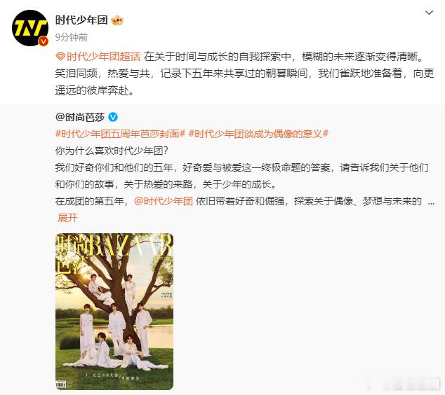#时代少年团向更遥远的彼岸奔赴##时代少年团笑泪同频热爱与共#五周年的时代少年团,在时尚芭莎中绽放光彩。笑泪同频的旅程,热爱与共的坚持,推动他们向彼岸前行。