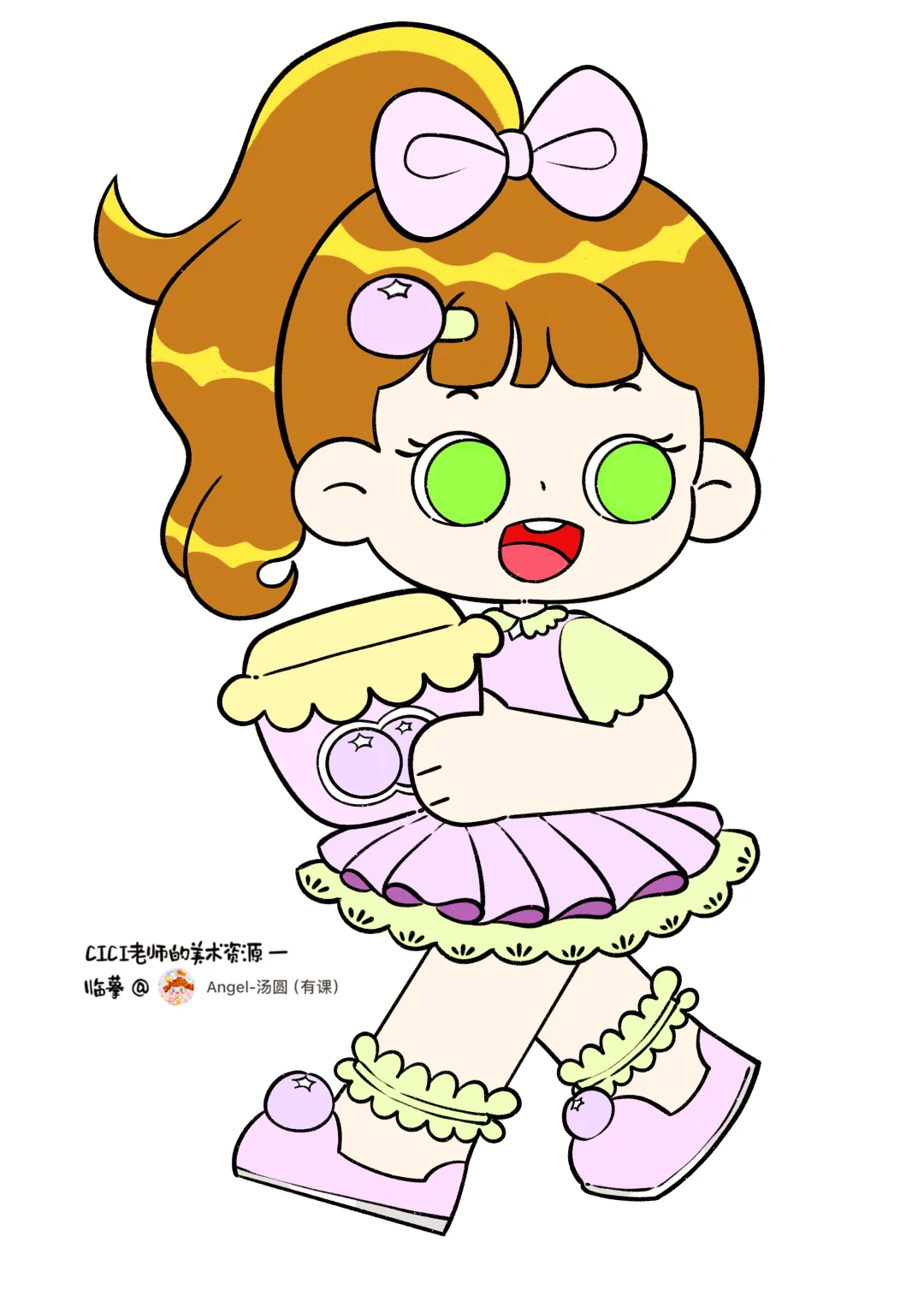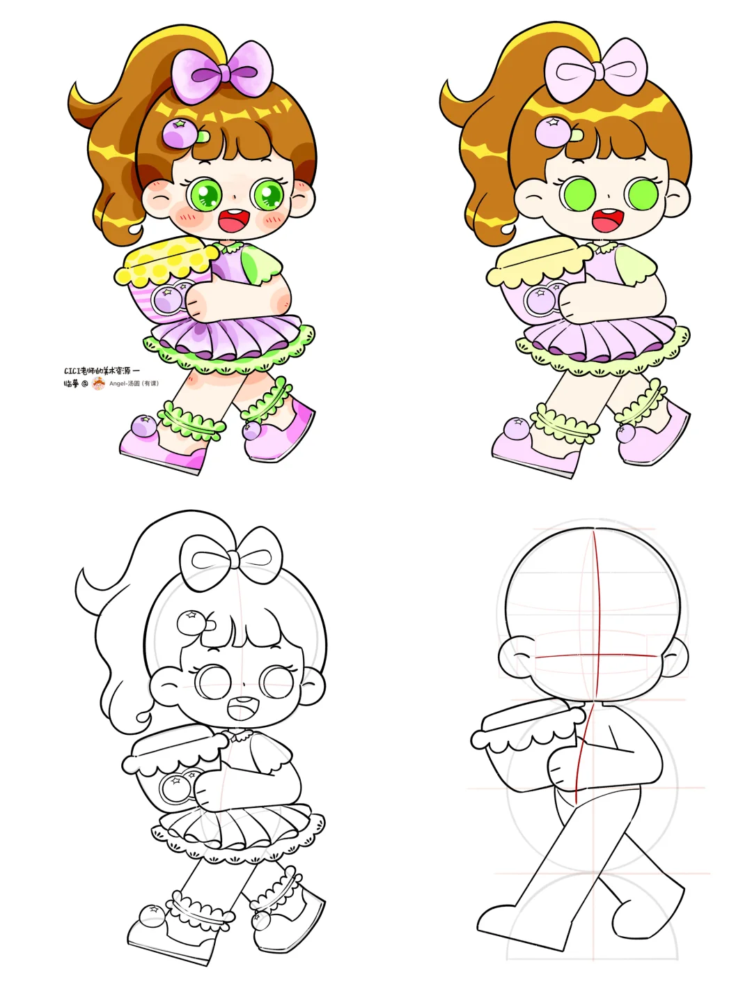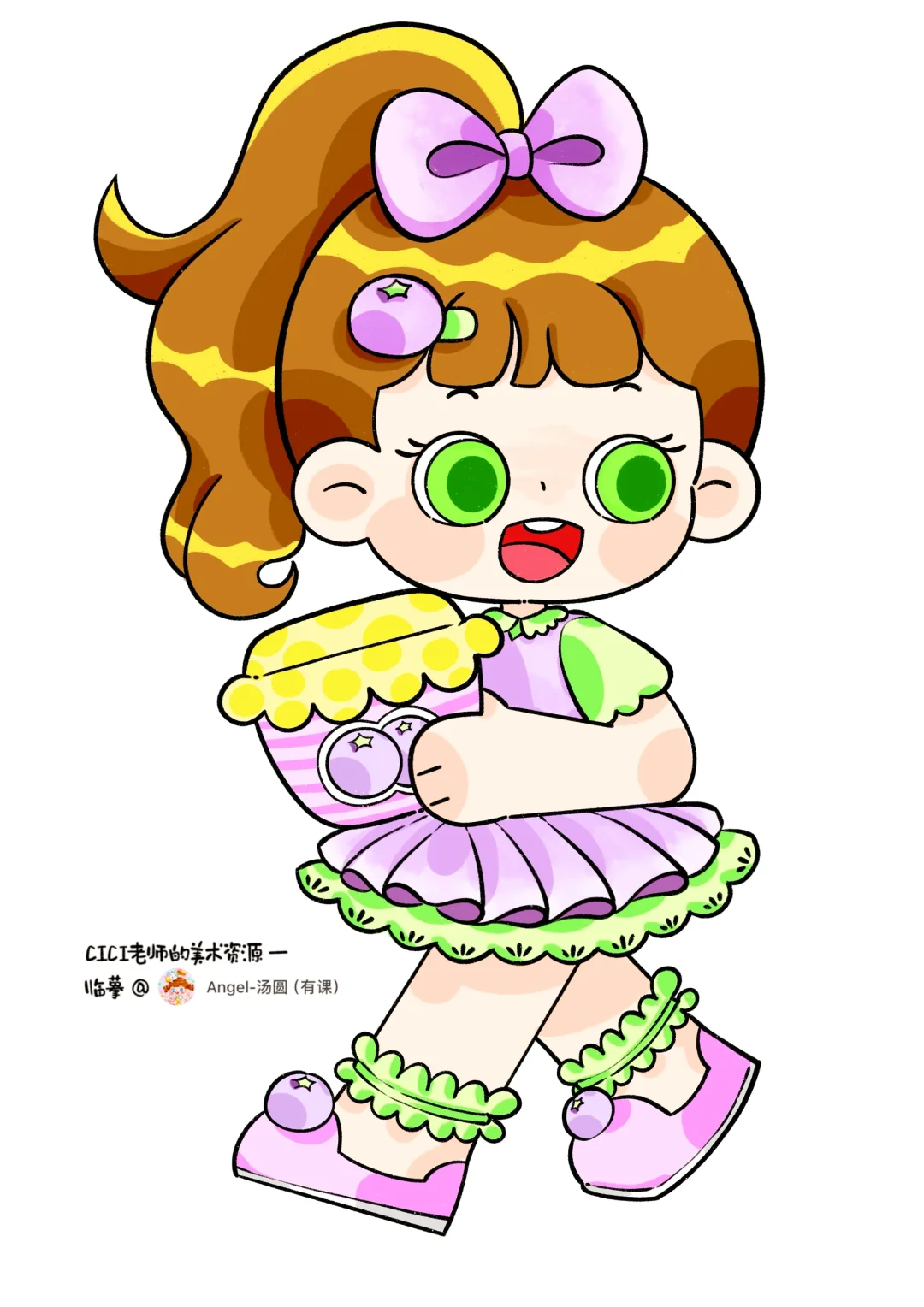 🎨2.5头身小女孩🧚🏻♀️,蓝莓🫐水果主题系列儿童画。 📚临摹