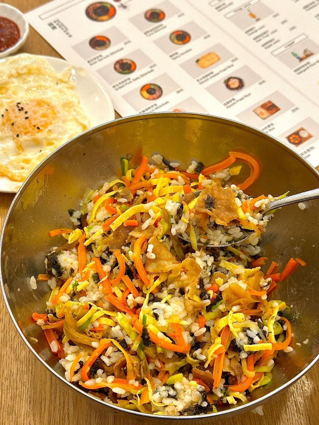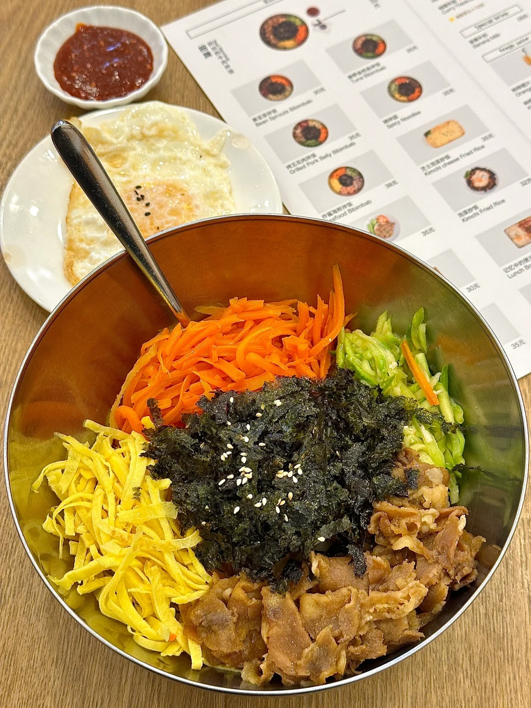 在广州天河吃到人生拌饭 韩式拌饭好大一碗,一个人吃足够 还有豆芽,萝卜丝,紫菜等等 环境挺温馨的,合适一人食哦 -