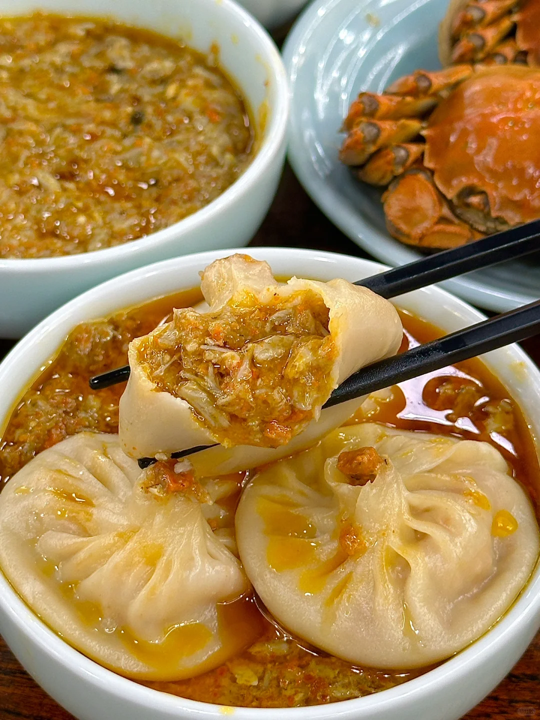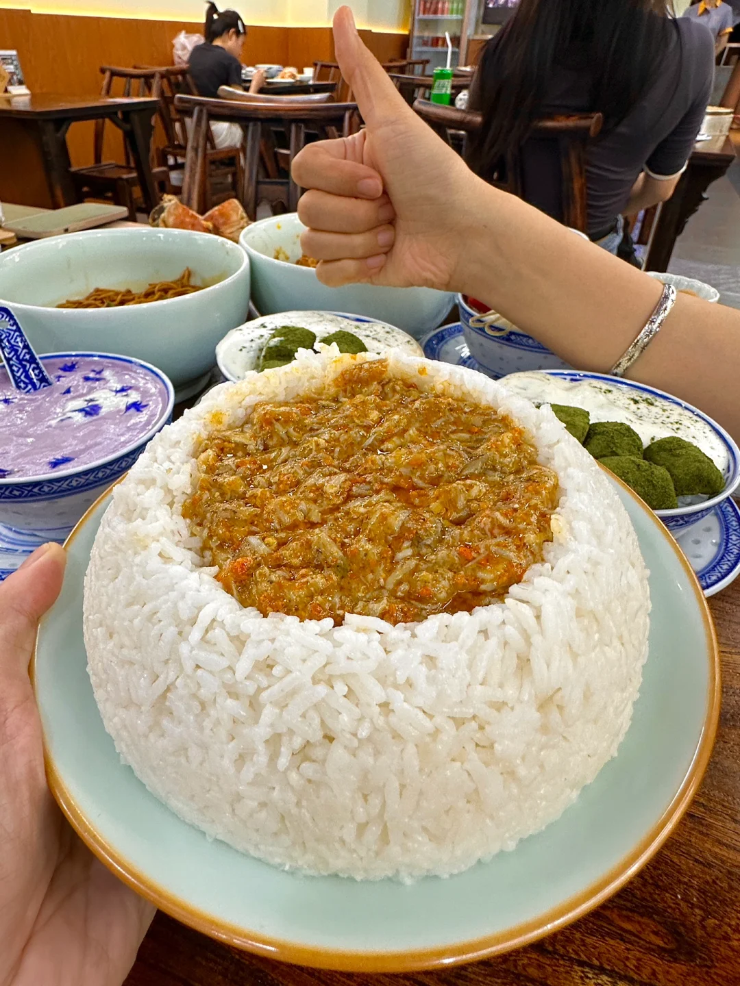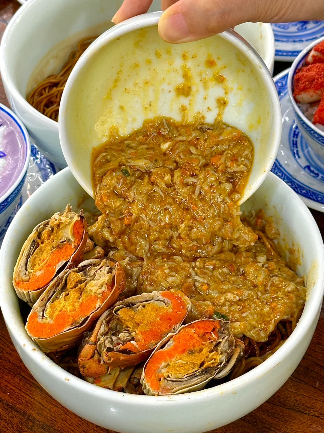 在北京路附近找到二人食小店 朋友或者情侣都很合适哦 浓郁的蟹黄包裹着面条 可以加点醋会更好吃哦 -