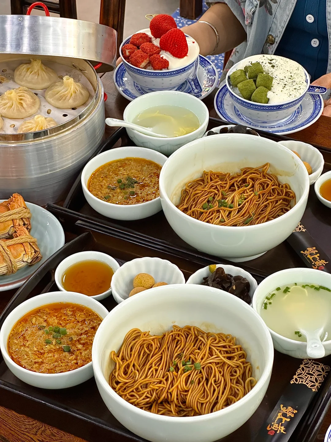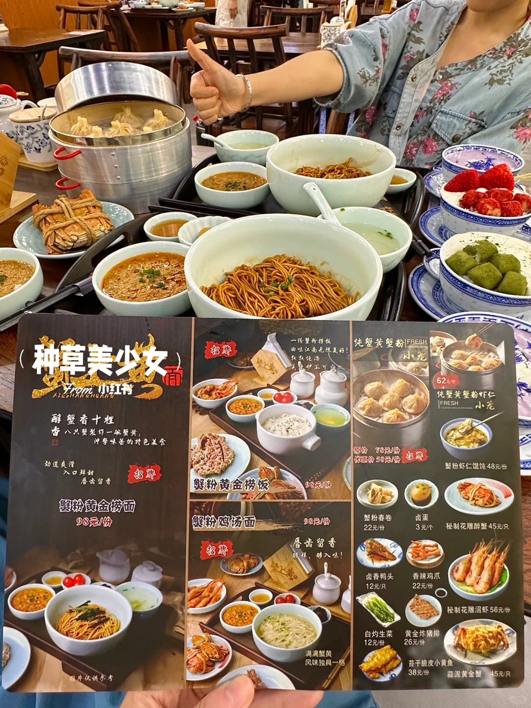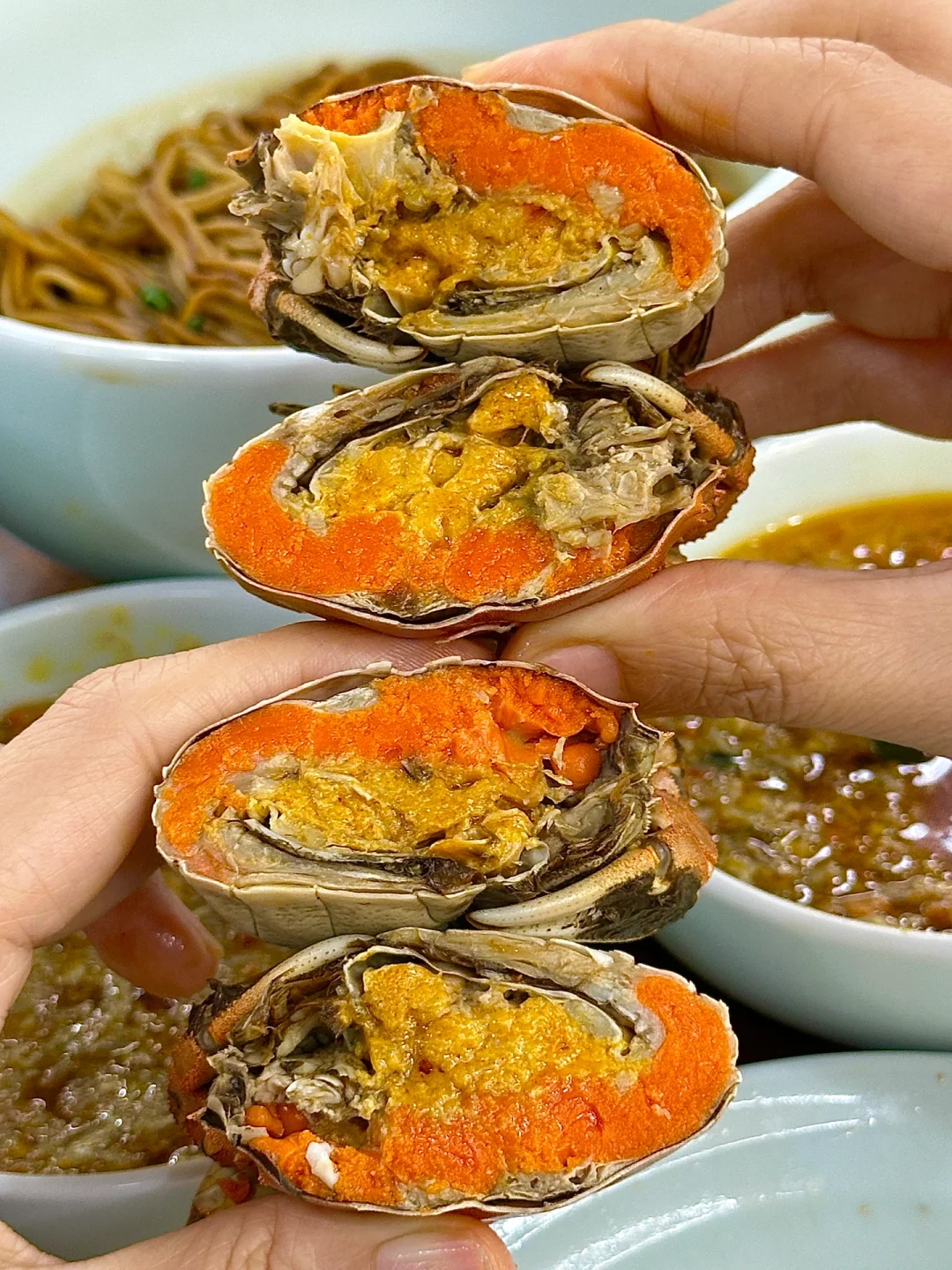 在北京路附近找到二人食小店 朋友或者情侣都很合适哦 浓郁的蟹黄包裹着面条 可以加点醋会更好吃哦 -