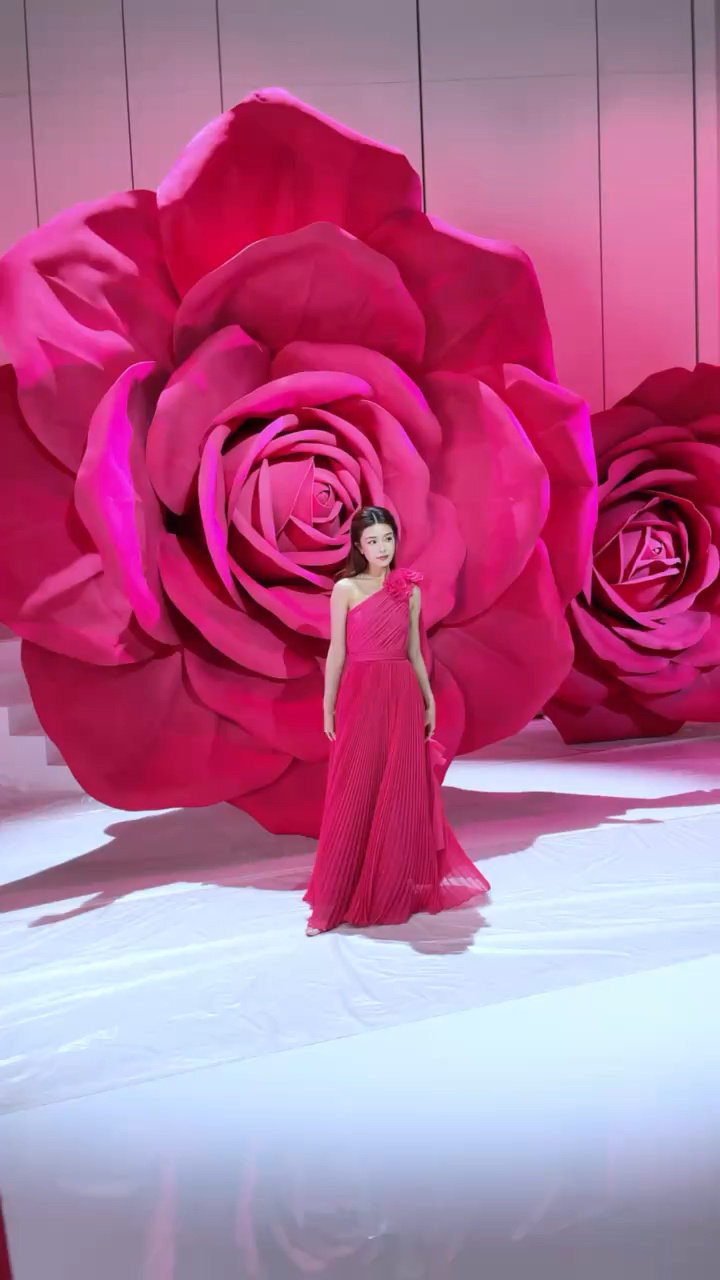 #文咏珊hold住了死亡芭比粉# 文咏珊如春日绽放的粉樱,在深圳时装周上璀璨夺目。那一身玫红单肩长裙,似燃烧的火焰,热烈而明艳。死亡芭比粉在她身上不再是挑战,而是魅力的加持。公主披肩发尽显温柔气质,肩上玫瑰更是点睛之笔,仿佛在诉说着浪漫的故事,让人不禁沉醉其中。