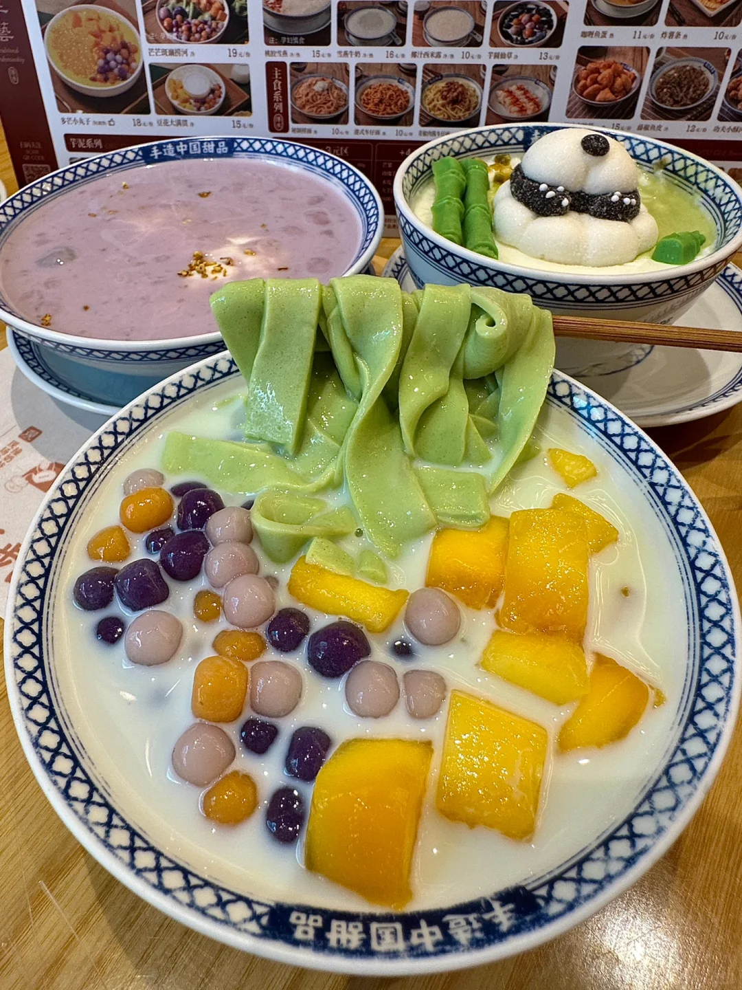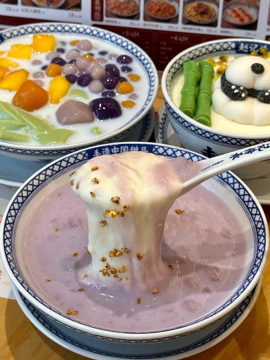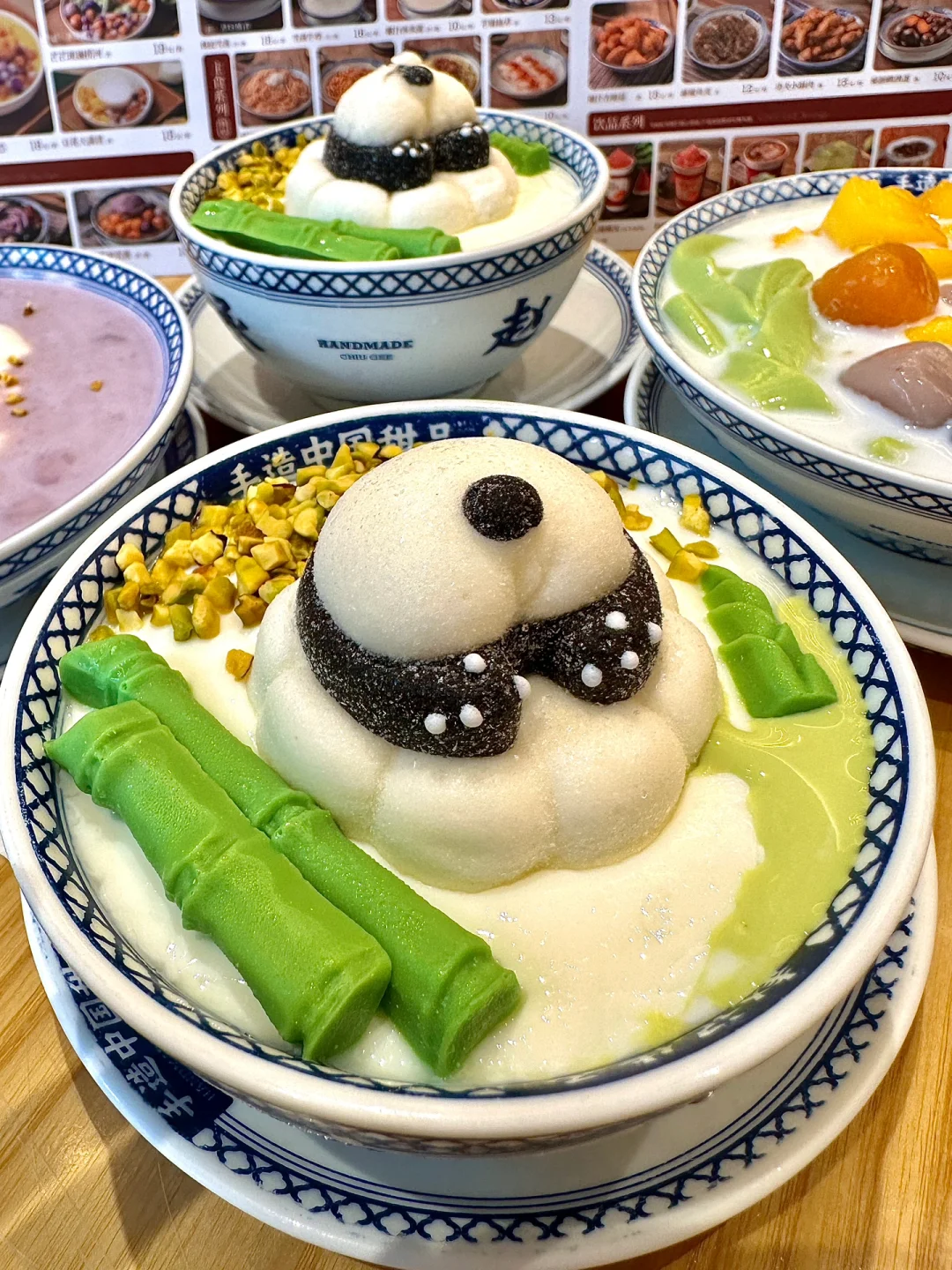 终于明白广州人为啥这么喜欢吃甜品了 每次路过这家糖水店就会去吃一碗 不仅好吃,而且很可爱啊啊啊~ - ✔️寻开心双皮奶 🐼熊猫PP是糯叽叽的软糖 嫩滑双皮奶包裹着浓郁的开心果馅 挖开会流心的~每一口都好满足!! -