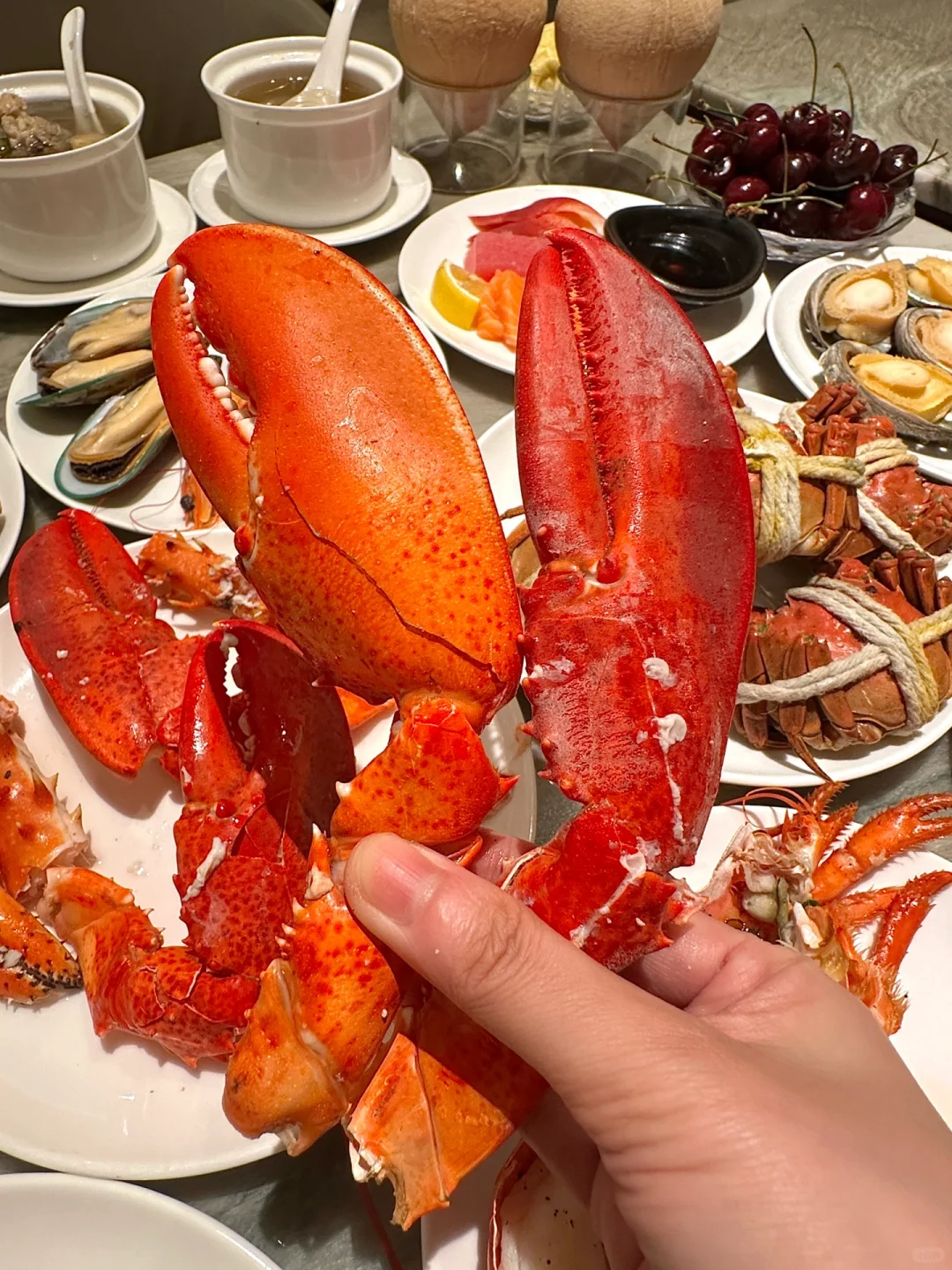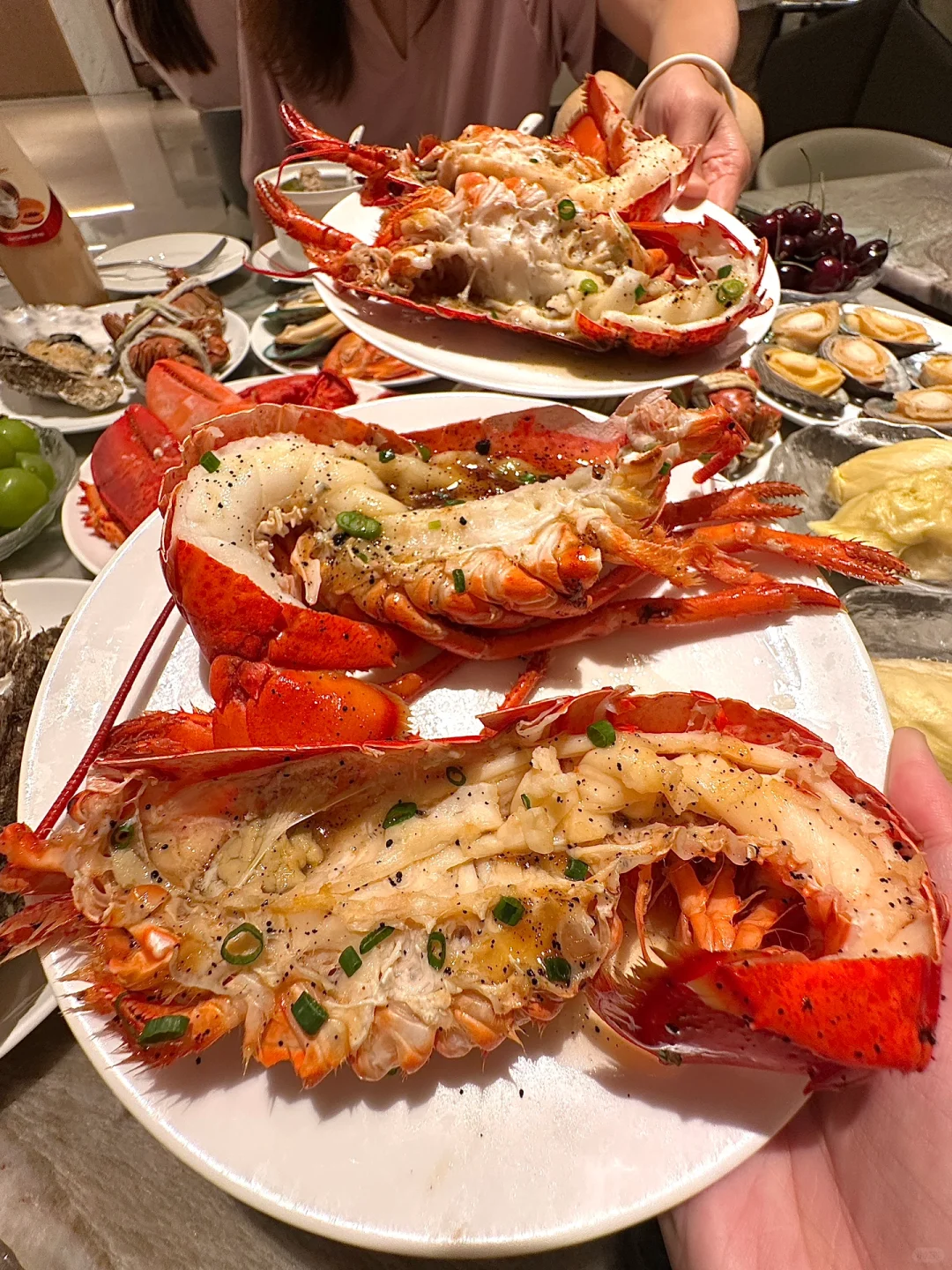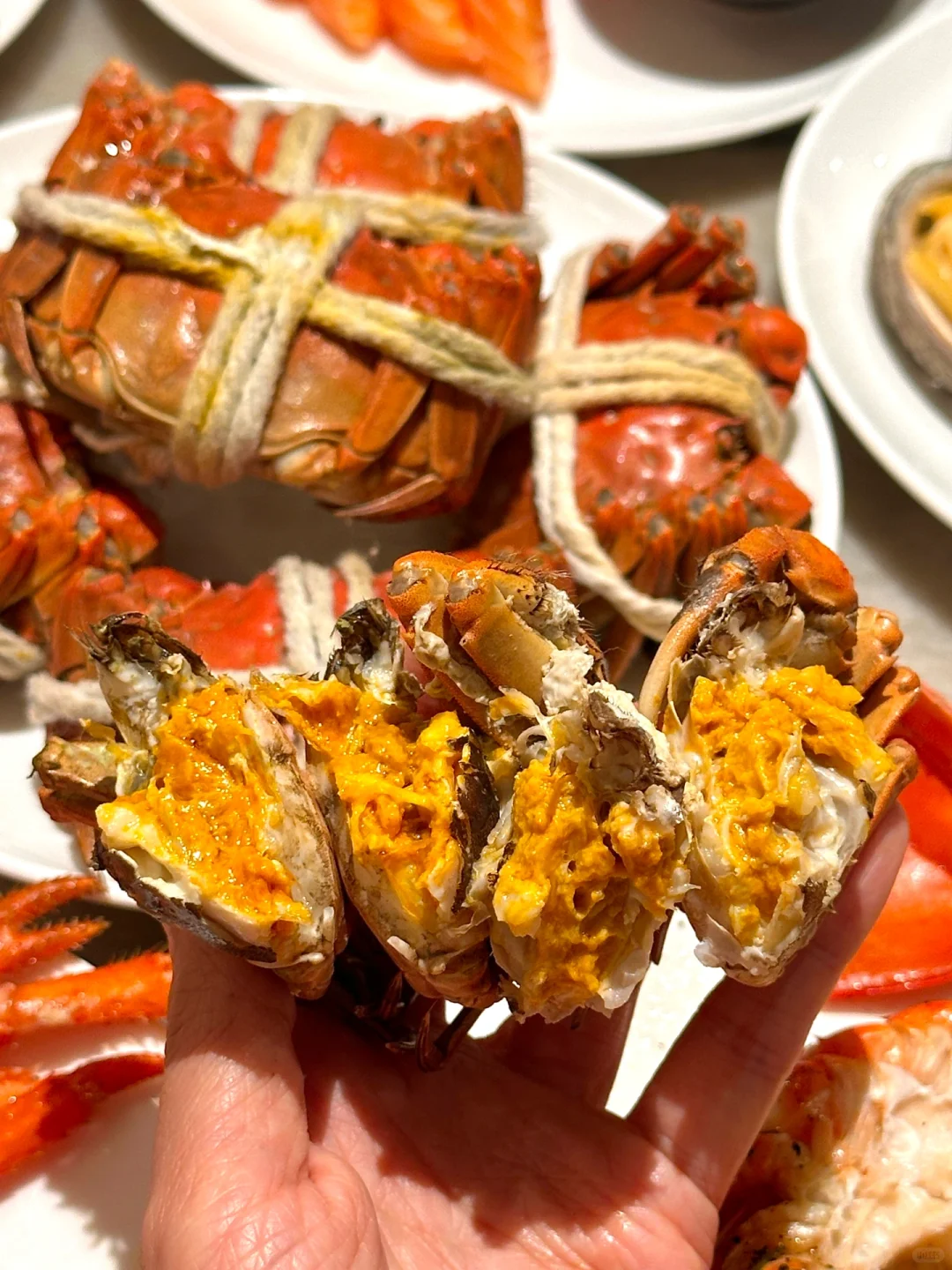 大闸蟹每一只都爆膏,龙虾淋上黑松露酱汁好好吃😭