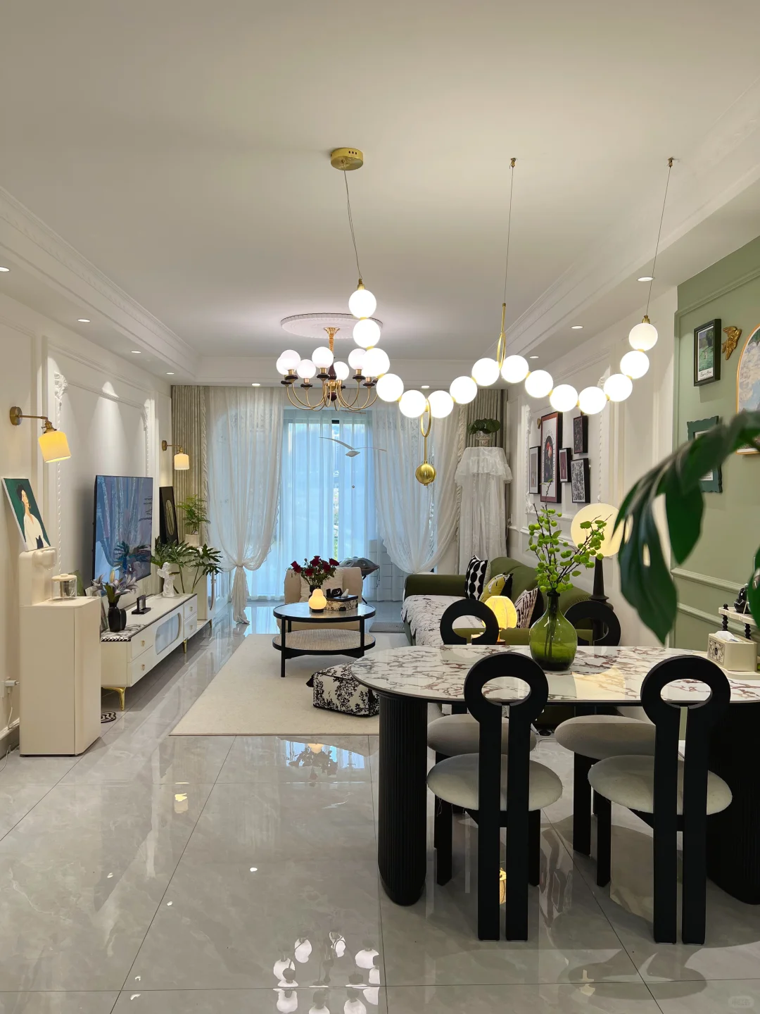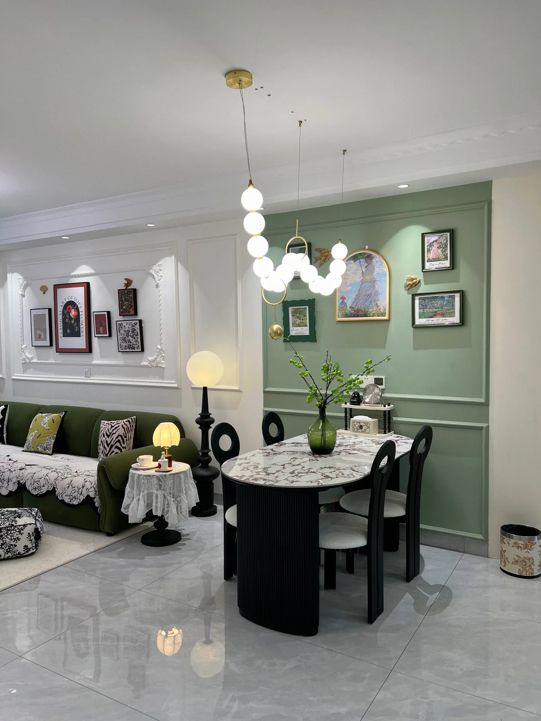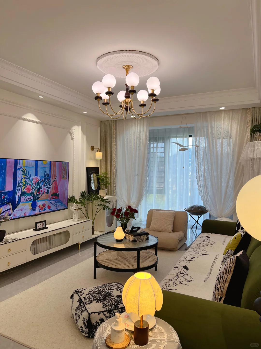 配色⚫️⚪️🟢拱门石膏线➕法式风软装🛋