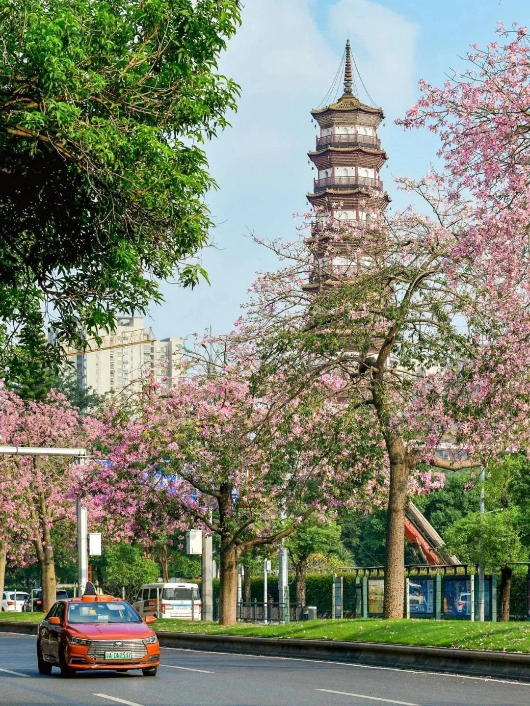 #随手记录秋日生活# 海珠道路两旁的异木棉悄然绽放,粉色浪漫装点大街小巷。 抬头望,不远处的赤岗塔、广州塔被粉红花海围绕,更似仙境一般。这里的花海,尽显广州“花城”本色。 偶尔抬头欣赏一下这满树繁花,感受秋日的岁月静好。