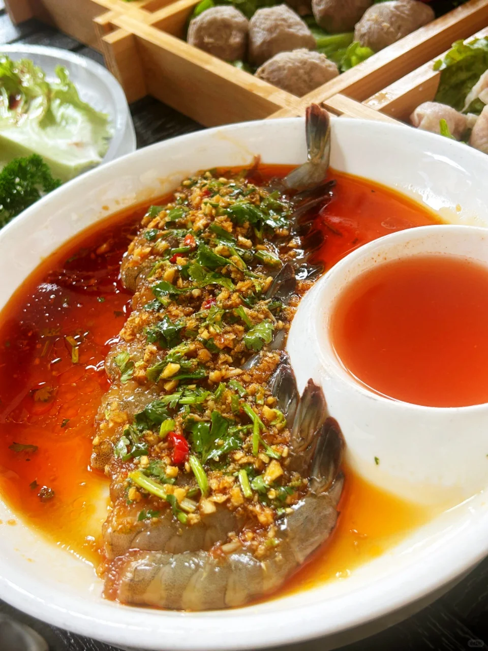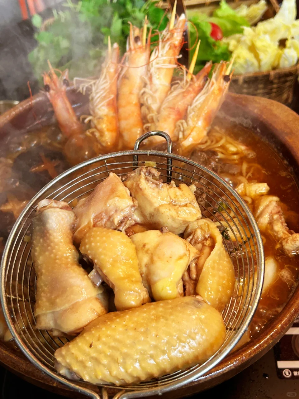 生腌、鹅肝、鹅肠、打边炉… 不用飞去潮汕,在南京也可以吃到了 生腌虾🍤Q 弹软糯,入口酸辣又开胃 新鲜好吃😋一口一个很上头 秘制调配卤水锅底的打边炉 烫起爽脆咸鲜的鹅肠、鲜嫩顺滑的鹅肝、鲜切吊龙和鸡肉,吃起来更有那个味了