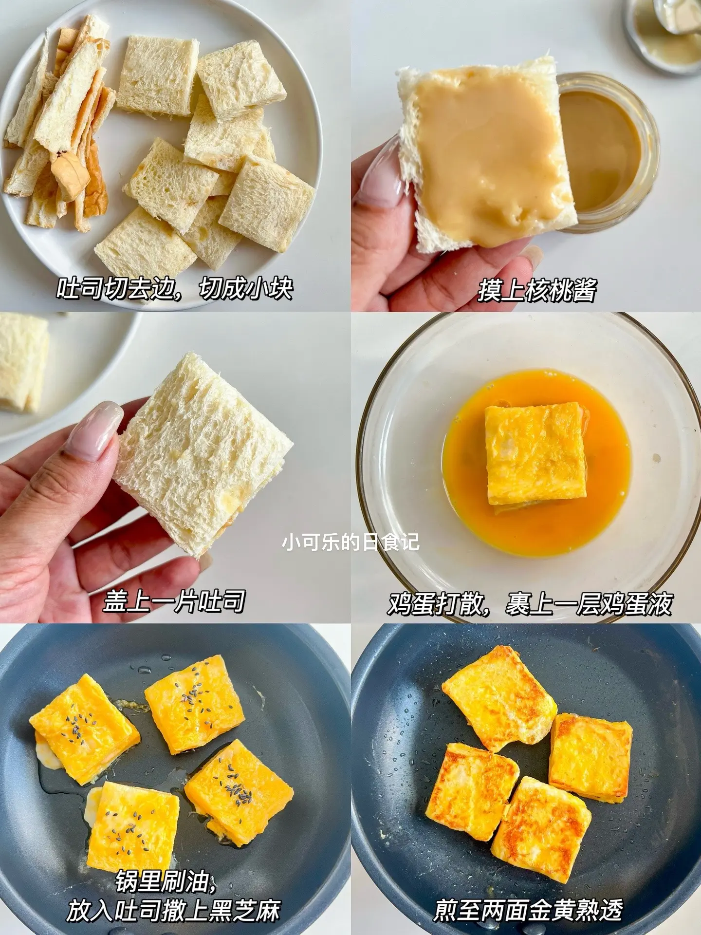 5分钟搞定宝宝早餐!!妈妈们快试试。早餐不知道吃什么?不如来份核桃酱西多士吧!仅需要5分钟就能轻松搞定,简单又美味,外酥里软,一口下去就能吃到浓郁的核桃酱,再搭配一杯牛奶,轻松搞定一餐,妈妈们快试试 🥣食材 - 吐司2片 - 鸡蛋1个 - 核桃酱 🔎详细做法请看图片 用的是果研社核桃酱,配料表干净,拌面条或者抹面包都很好吃😋